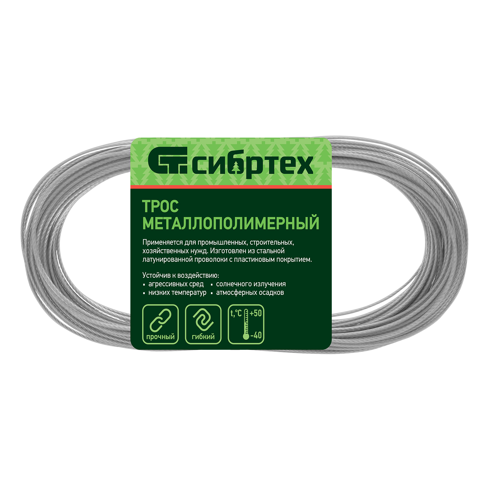 Трос металлополимерный прозрачный ПР-2.0, толщина 2.0 мм, моток 20 метров Сибртех в Уфе