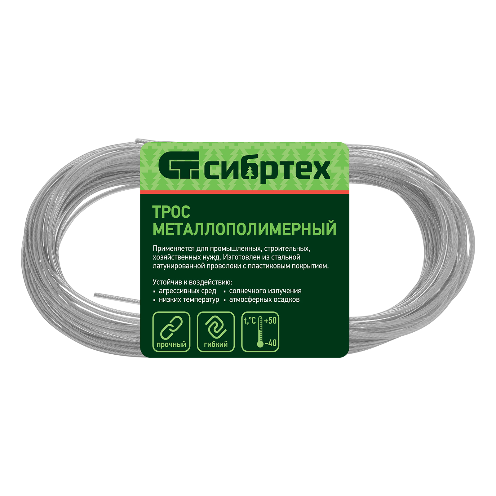 Трос металлополимерный прозрачный ПР-2.5, толщина 2.5 мм, моток 20 метров Сибртех в Уфе