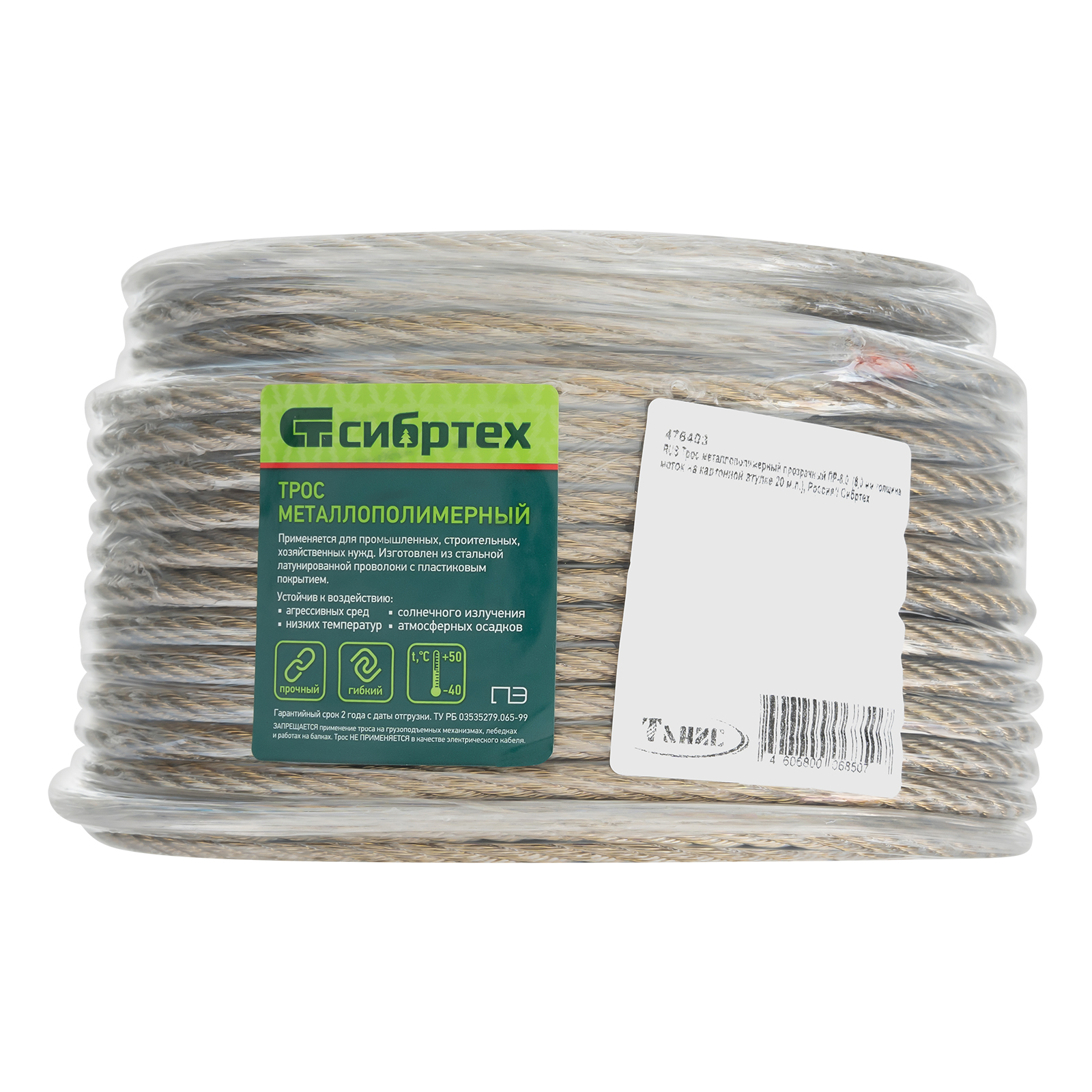 Трос металлополимерный прозрачный ПР-6.0, толщина 6.0 мм, моток 20 метров Сибртех в Уфе
