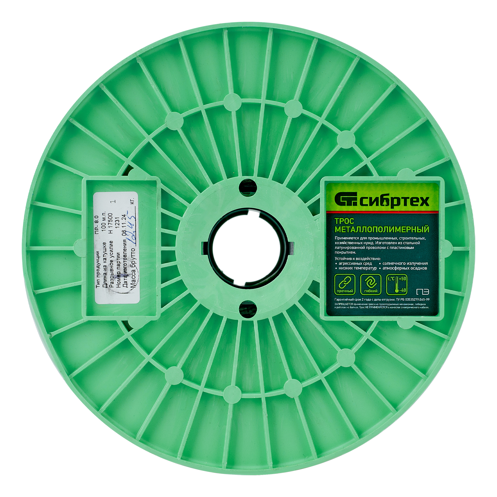 Металлополимерный прозрачный трос ПР-8.0 Сибртех 47641 толщиной 8 мм, 200 м. п. на катушке, используется для монтажа рекламных баннеров, установки ограждений, палаток, теплиц, погружения скважинных насосов и датчиков. Применяется в качестве садового троса-шнура для подвязки растений, а также может служить для развешивания белья. Жила шнура изготовлена из стальной проволоки, поэтому он выдерживает значительные нагрузки.