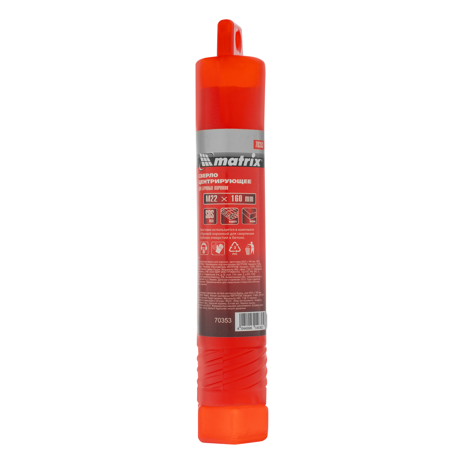 Центрирующее сверло для коронок Matrix 70353 с хвостовиком SDS MAX длиной 160 мм, с посадкой М22, используется для получения отверстий в бетоне. Позволяет выполнять глубокое засверливание, предотвращает смещение коронки и повышает точность работы. Хвостовик SDS MAX совместим с патронами тяжелых перфораторов.