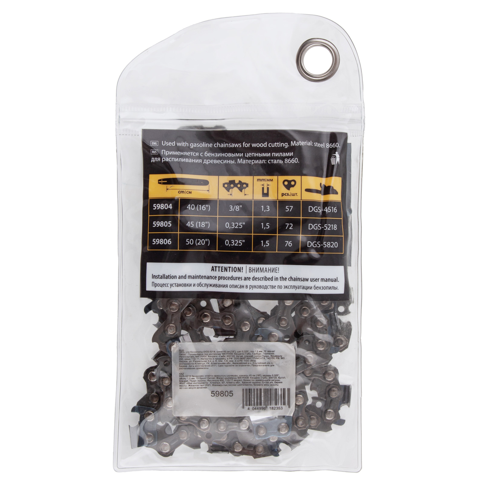 Цепь для бензопилы DGS-5218, шина 45 см (18") шаг 0.325", паз 1.5 мм, 72 звена Denzel в Уфе