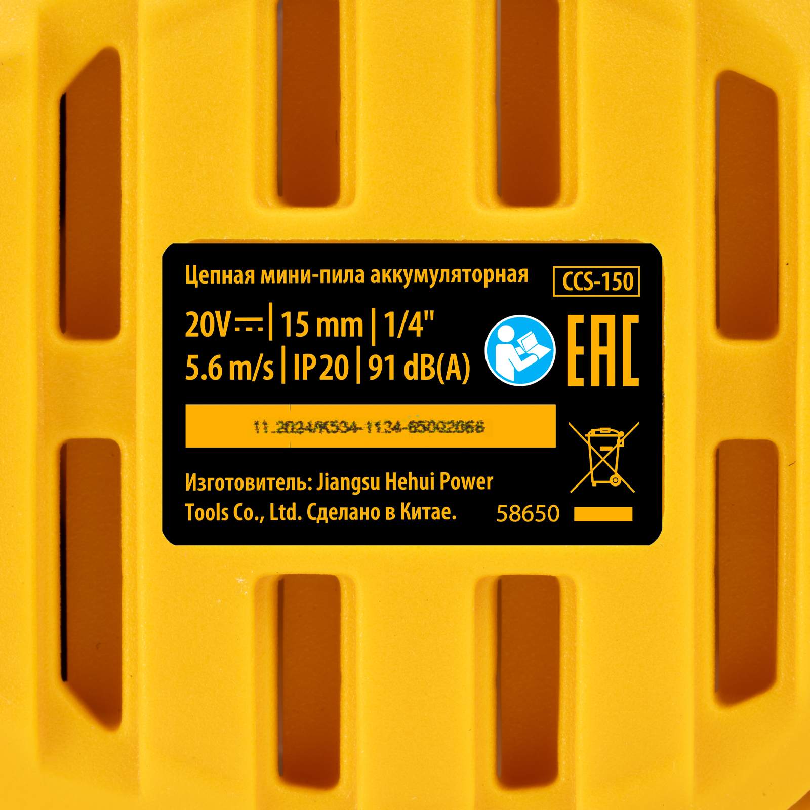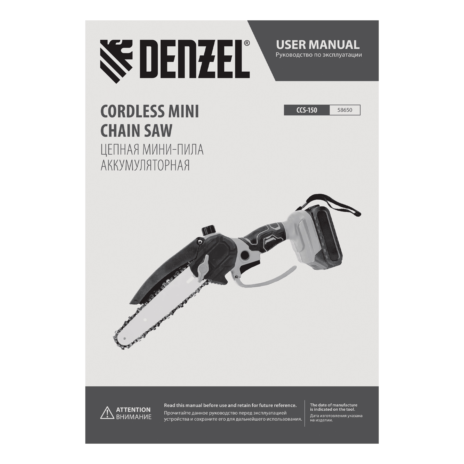 Цепная мини-пила аккумуляторная бесщет., CCS-150, шина 150 мм, Li-Ion, 20 В Denzel в Уфе