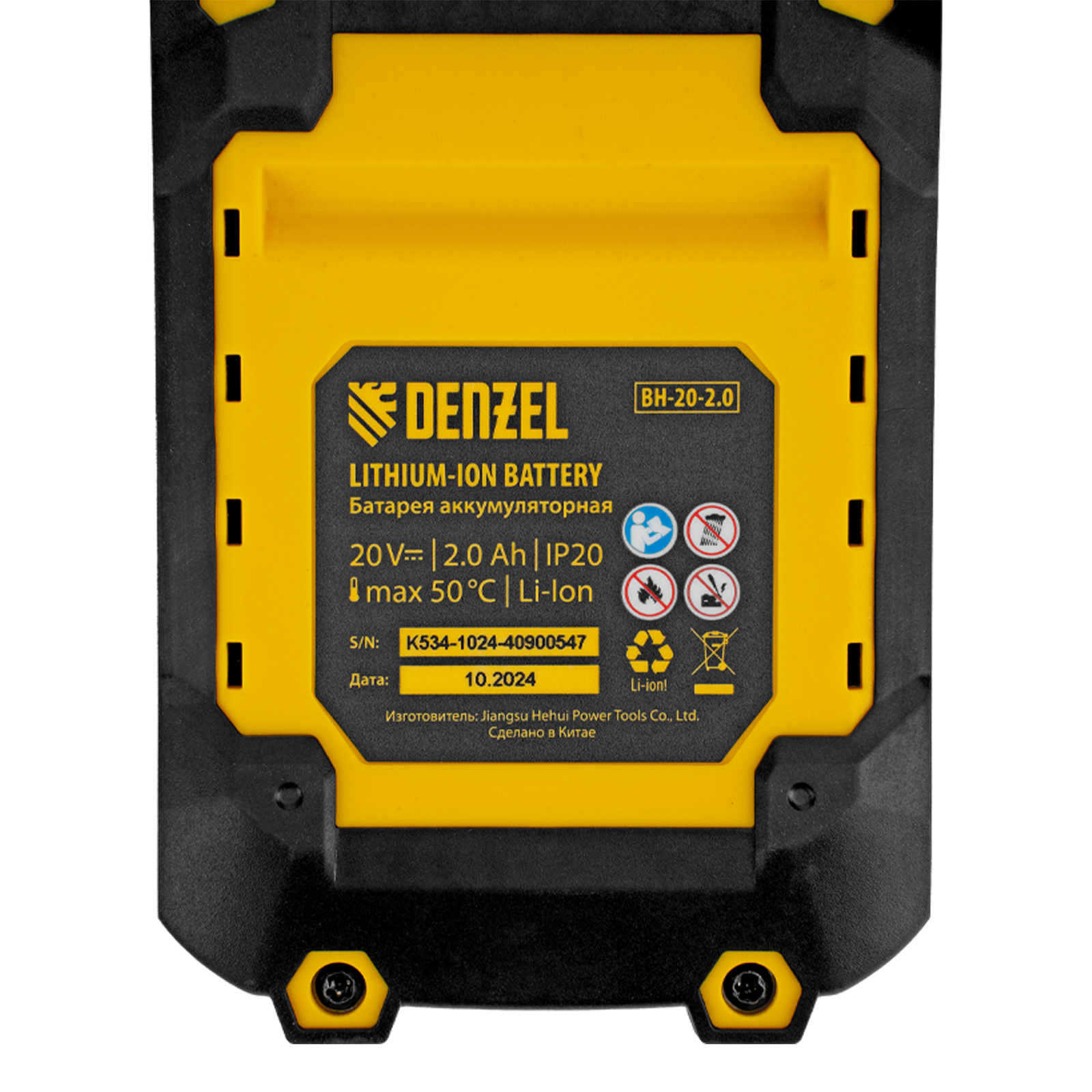 - Универсальность — аккумулятор совместим со всеми инструментами единой платформы Denzel Power System 20V.