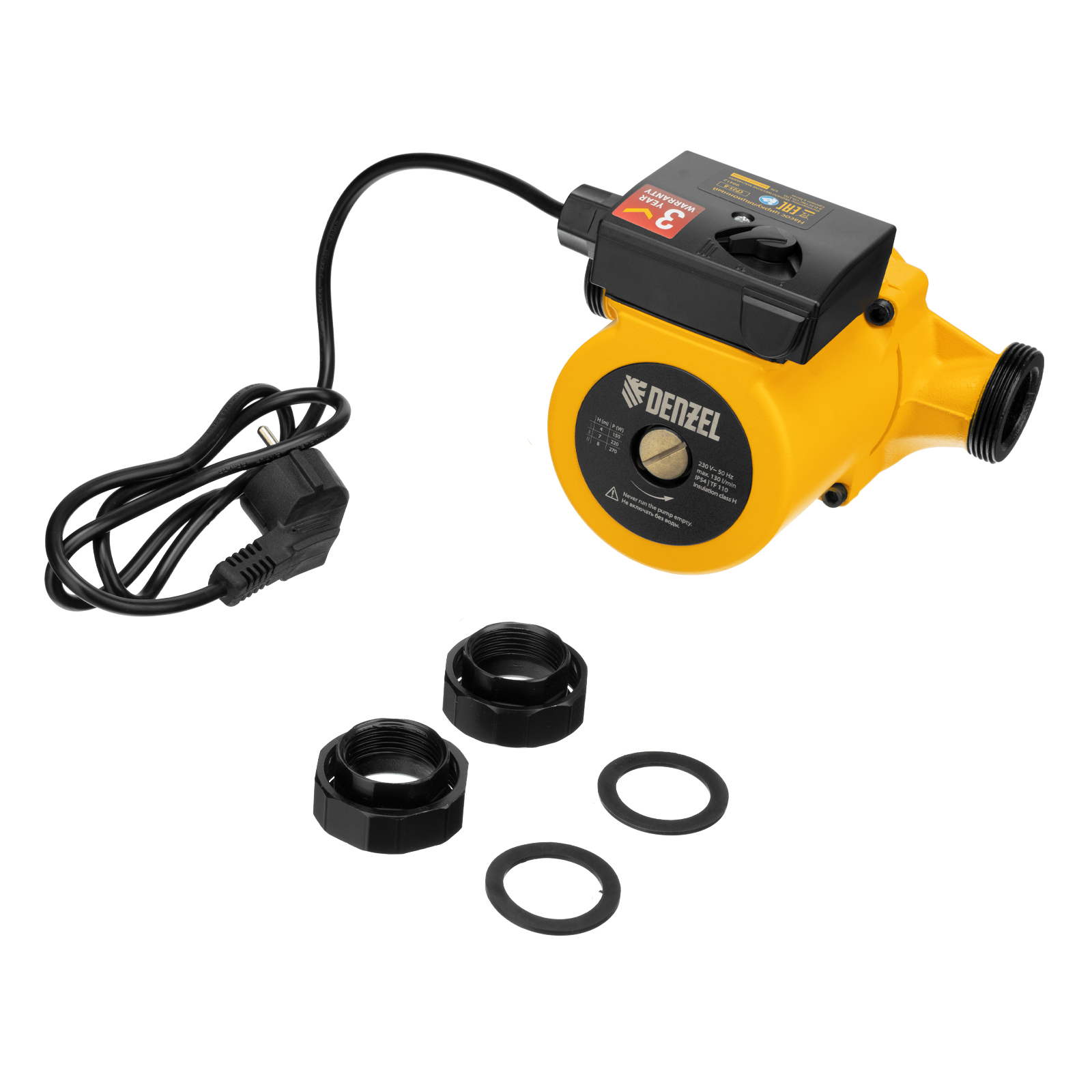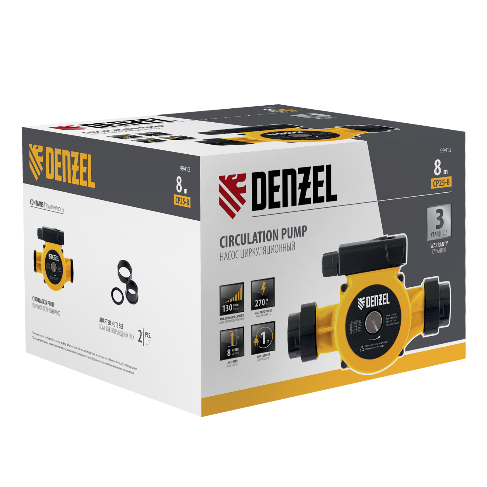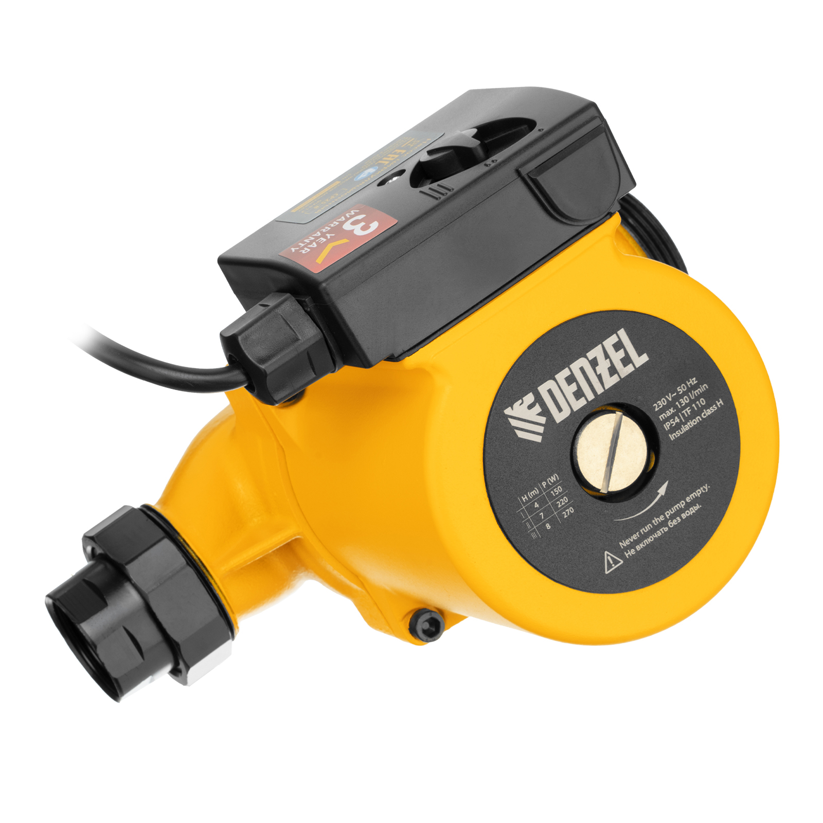 Циркуляционный насос CP25-8, напор 8 м, 130 л/мин, 1 м кабель, монт. длина 180 мм Denzel в Уфе