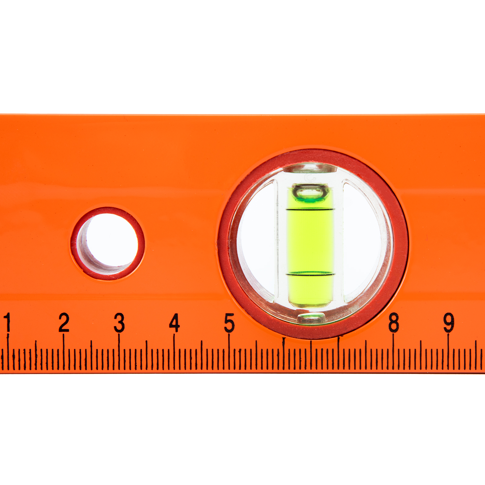 Алюминиевый уровень Sparta 330295 длиной 1000 мм, желтого цвета, с 3 глазками и линейкой, будет полезен при проведении строительных, отделочных, облицовочных и других работ, требующих особой точности. Уровень с тремя глазками поможет определить отклонение от горизонтальной и вертикальной плоскости, выставить угол 45°, измерить предметы и т. д.