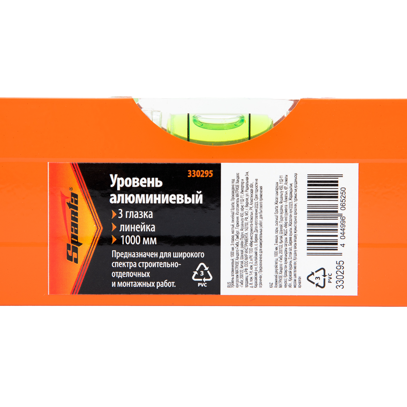 Уровень алюминиевый, 1000 мм, 3 глазка, желтый, линейка Sparta в Уфе