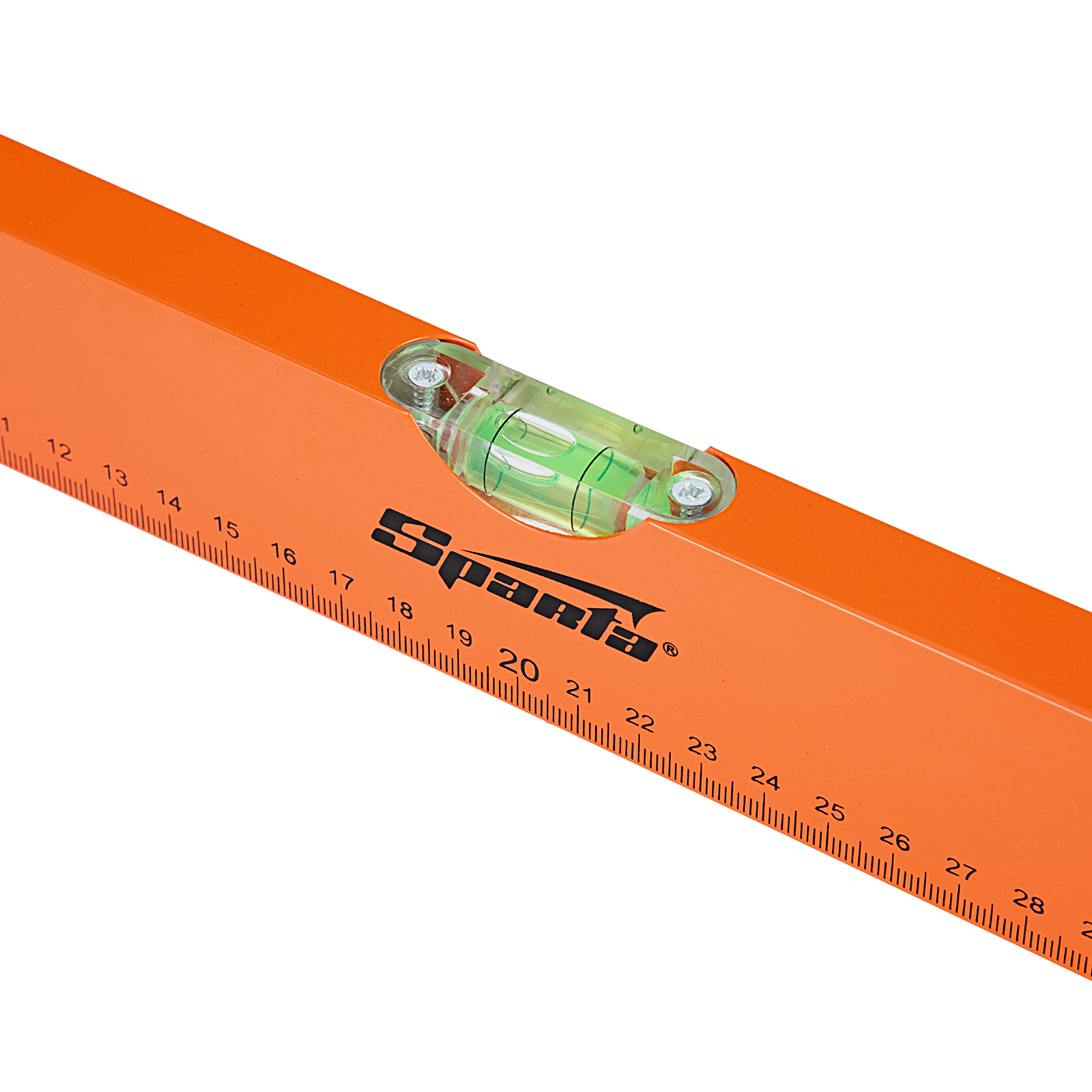 Алюминиевый уровень Sparta 330205 длиной 400 мм, желтого цвета, с 3 глазками и линейкой, будет полезен при проведении строительных, отделочных, облицовочных и других работ, требующих особой точности. Уровень с тремя глазками поможет определить отклонение от горизонтальной и вертикальной плоскости, выставить угол 45°, измерить предметы и т. д.