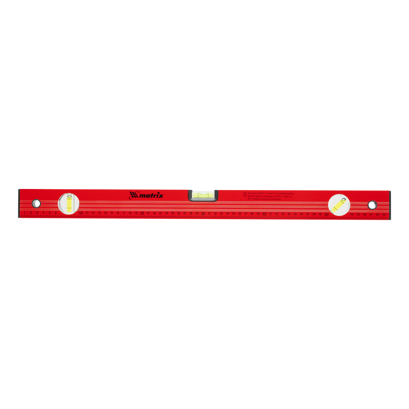 Уровень алюминиевый, 600 мм, 3 глазка, красный, линейка Matrix в Уфе