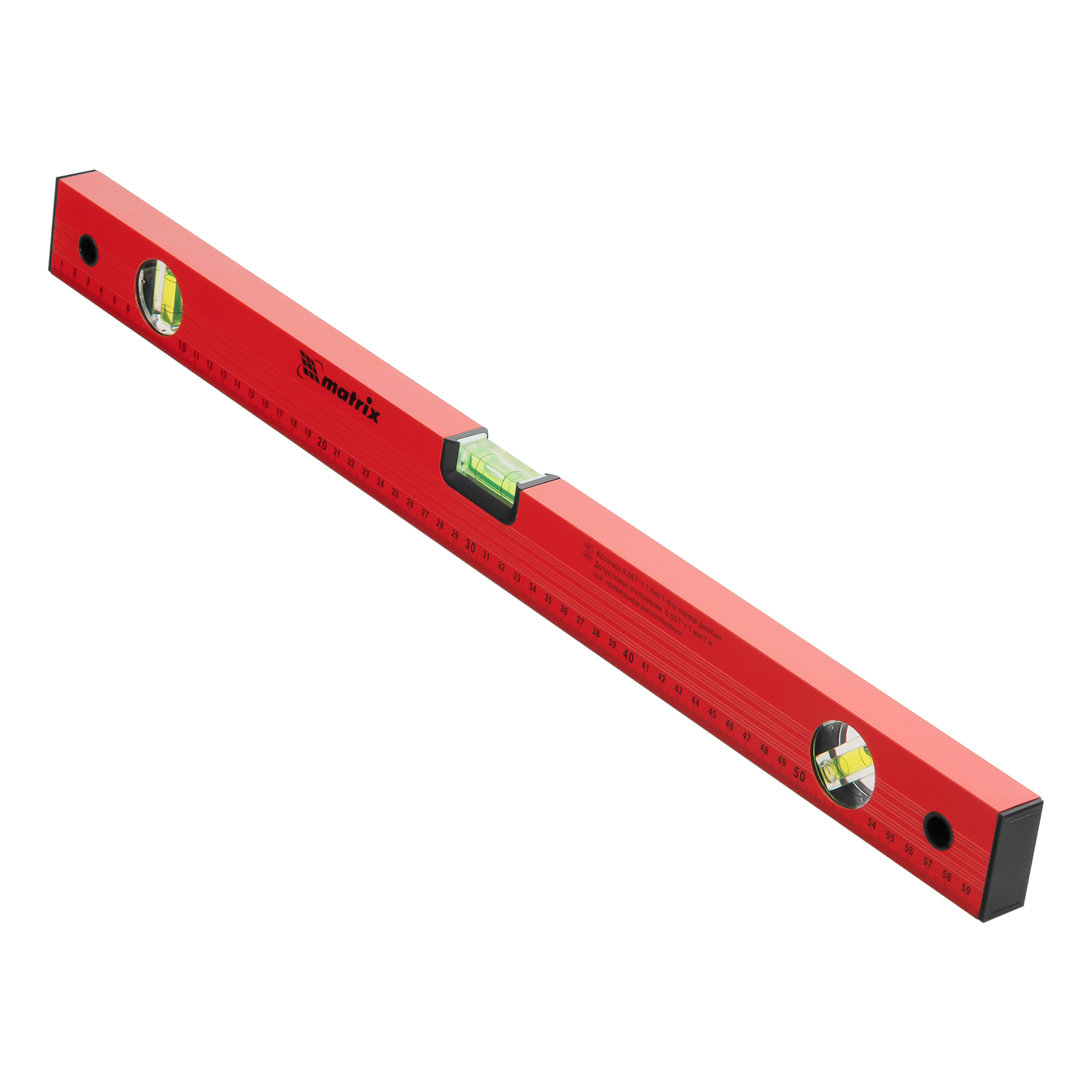 Алюминиевый уровень Matrix 33223 длиной 600 мм, красного цвета, с 3 глазками и линейкой, пригодится при проведении строительных, ремонтных и монтажных работ. С ним повышается точность работы, что позволяет добиться качественного результата. Три колбы рассчитаны на проверку горизонтали, вертикали и угла 45 градусов, погрешность равна 1 мм/м (0,057 градуса).,Для определения отклонения вертикали 90 градусов необходимо использовать пузырьковую ампулу только в верхнем положении уровня. Только базовая поверхность является рабочей (противоположная ампуле 180 градусов).