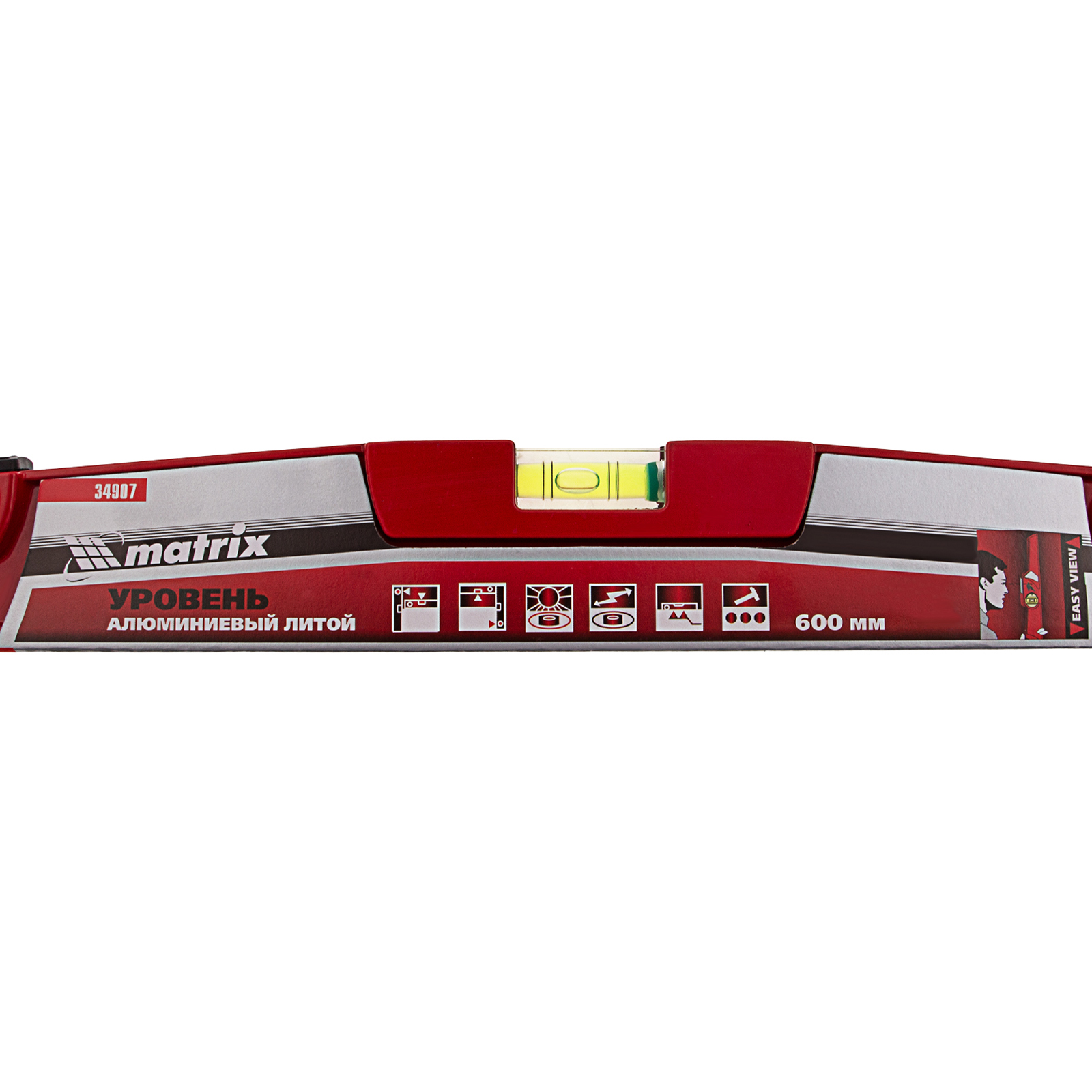 Уровень алюминиевый, 600 мм, литой, 2 глазка (1 фронтальный), ударная площадка Matrix в Уфе