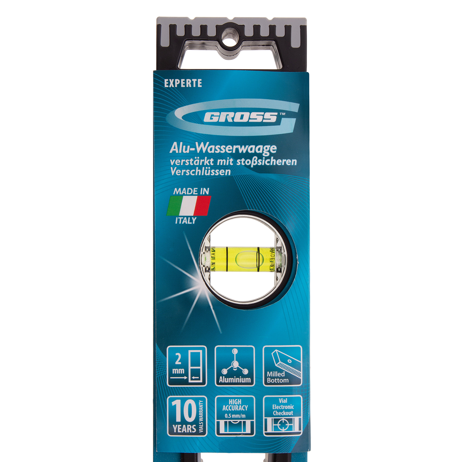 Усиленный алюминиевый уровень Gross 34326 длиной 600 мм, с ударопрочными заглушками, рукоятками и 3 глазками, — универсальный инструмент для решения профессиональных задач на строительной площадке. Благодаря ему можно выровнять поверхности относительно горизонтали и вертикали или проверить соответствие углу 45 градусов.