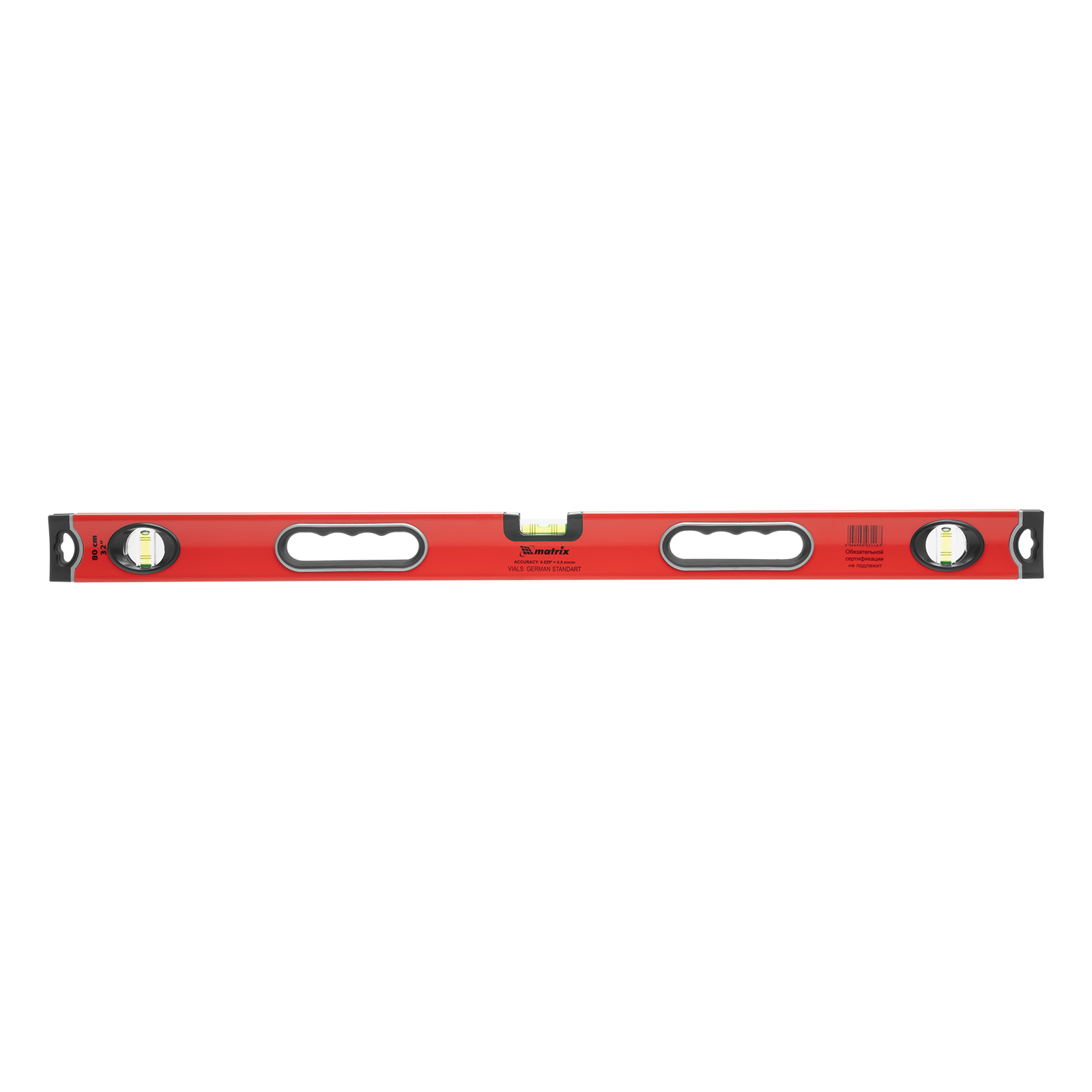 Алюминиевый уровень Matrix 34306 длиной 800 мм, с 3 глазками, ударопрочными заглушками и двухкомпонентными ручками, повышает точность работы, т. к. позволяет обнаружить отклонения от вертикали, горизонтали и угла 45°. Используется для монтажа конструкций, укладки покрытий, облицовки поверхностей и т. д., подходит для профессионального и бытового применения.