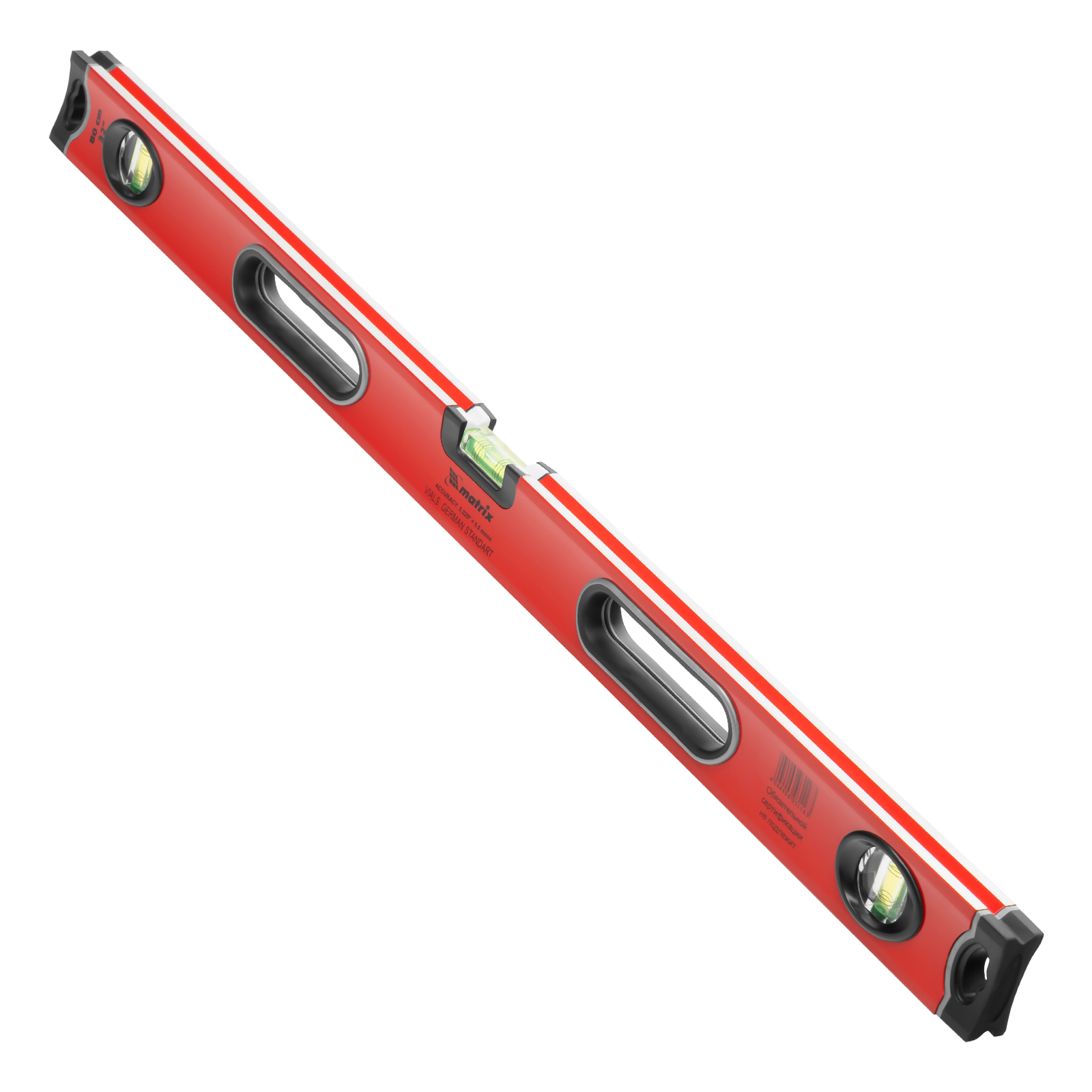 Уровень алюминиевый, 800 мм, 3 глазка, ударопрочные заглушки, двухкомпонентные ручки Matrix ProFI в Уфе