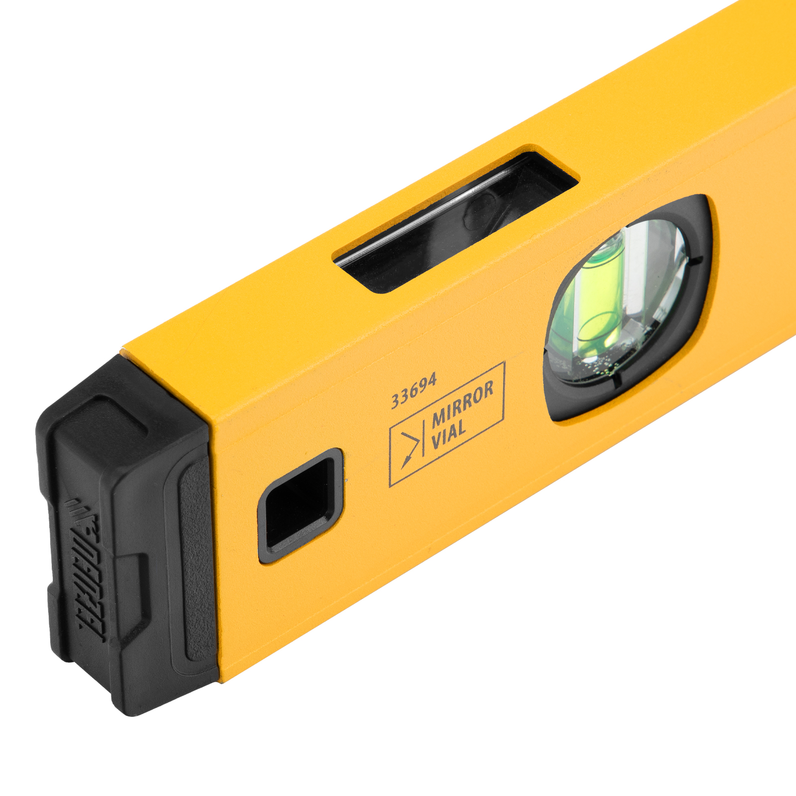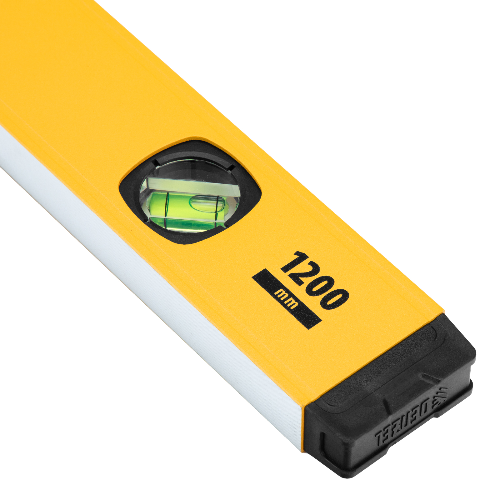 Алюминиевый фрезерованный уровень Denzel 33694 длиной 1200 мм, с магнитом и 3 глазками, из которых 1 зеркальный, предназначен для контроля отклонений от горизонтальной, вертикальной и поверхности под углом 45° с точностью 0,5 мм/м. 3 пузырьковые камеры 90°, 180° и 45° позволяют быстро проверить правильность разметки. Инструмент незаменим при проведении строительных, ремонтных, сантехнических работ.