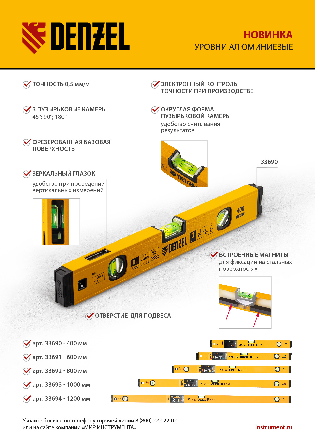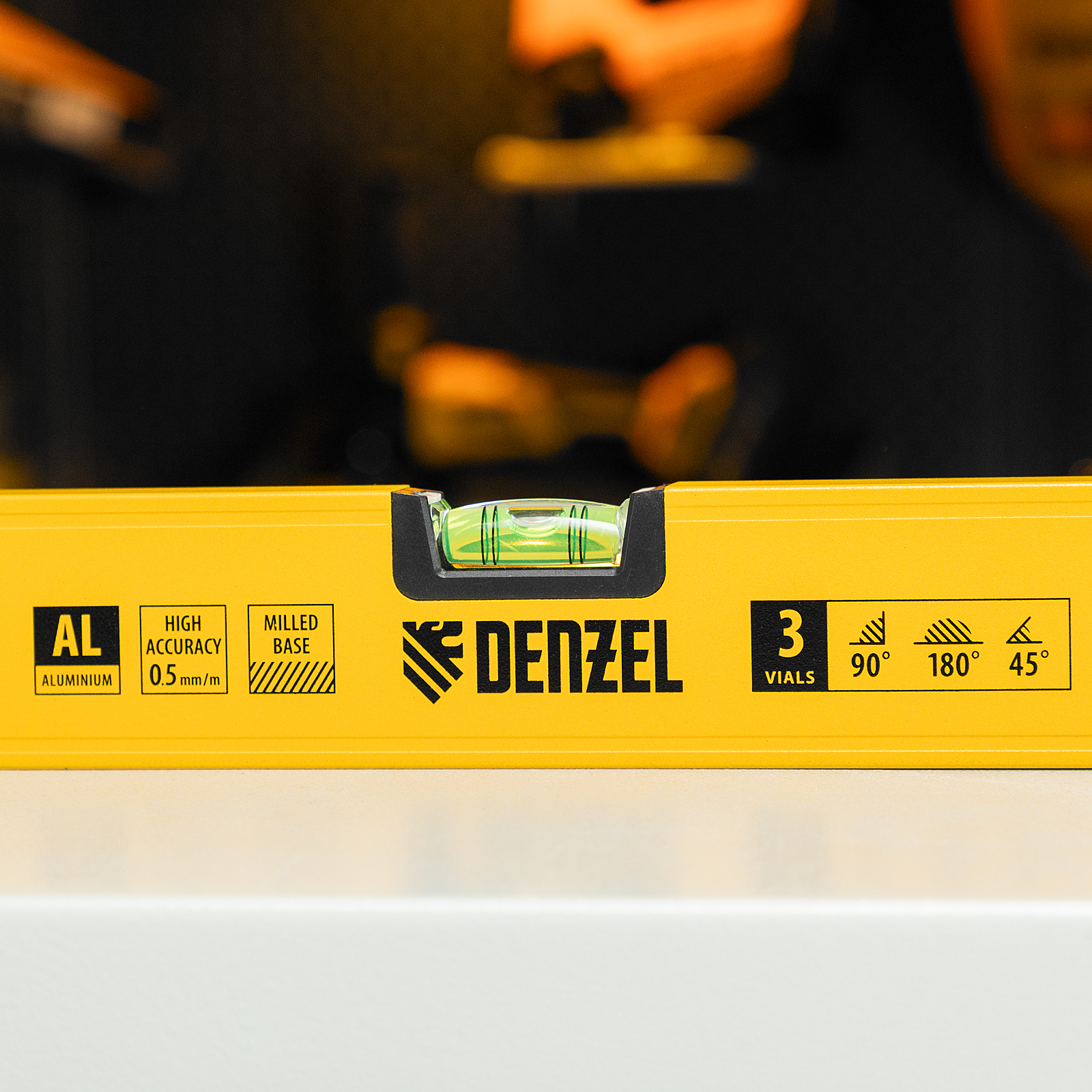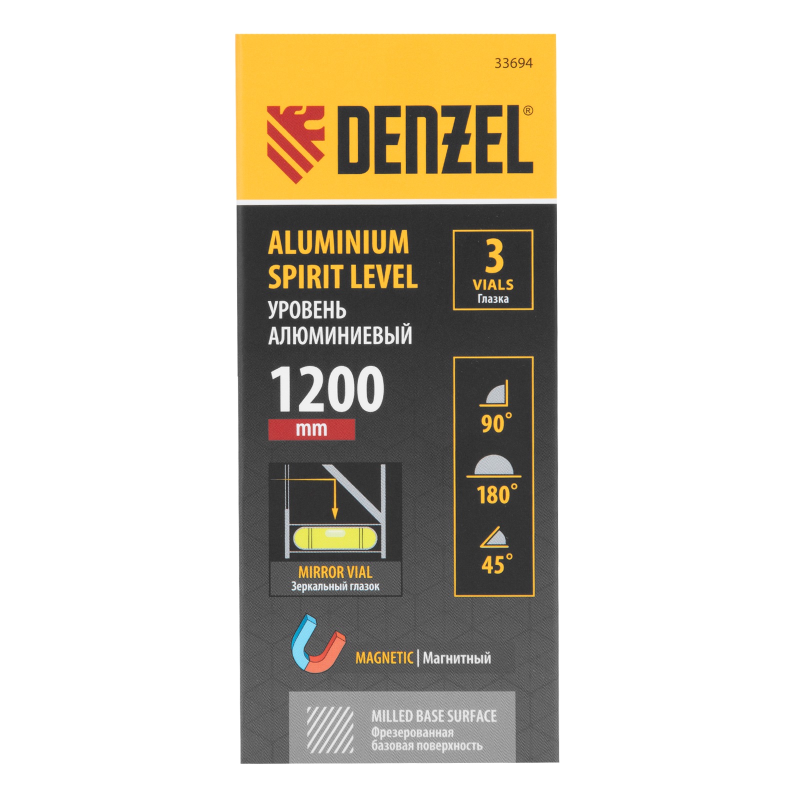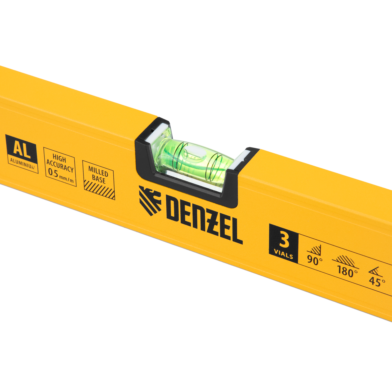 Уровень алюминиевый, магнит, фрезерованный, 3 глазка (1 зеркал.) 0,5 мм/м, 1200 мм Denzel в Уфе