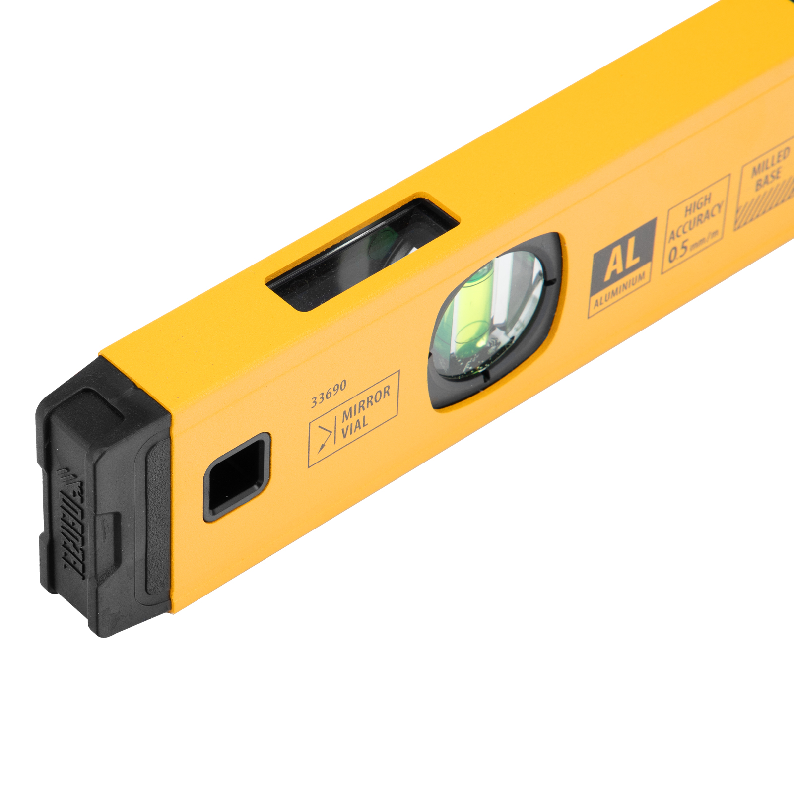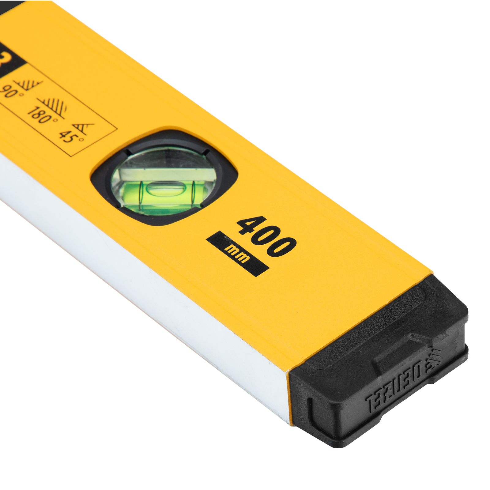 Алюминиевый фрезерованный уровень Denzel 33690 длиной 400 мм, с магнитом и 3 глазками, из которых 1 зеркальный, предназначен для контроля отклонений от горизонтальной, вертикальной и поверхности под углом 45° с точностью 0,5 мм/м. 3 пузырьковые камеры 90°, 180° и 45° позволяют быстро проверить правильность разметки. Инструмент незаменим при проведении строительных, ремонтных, сантехнических работ.