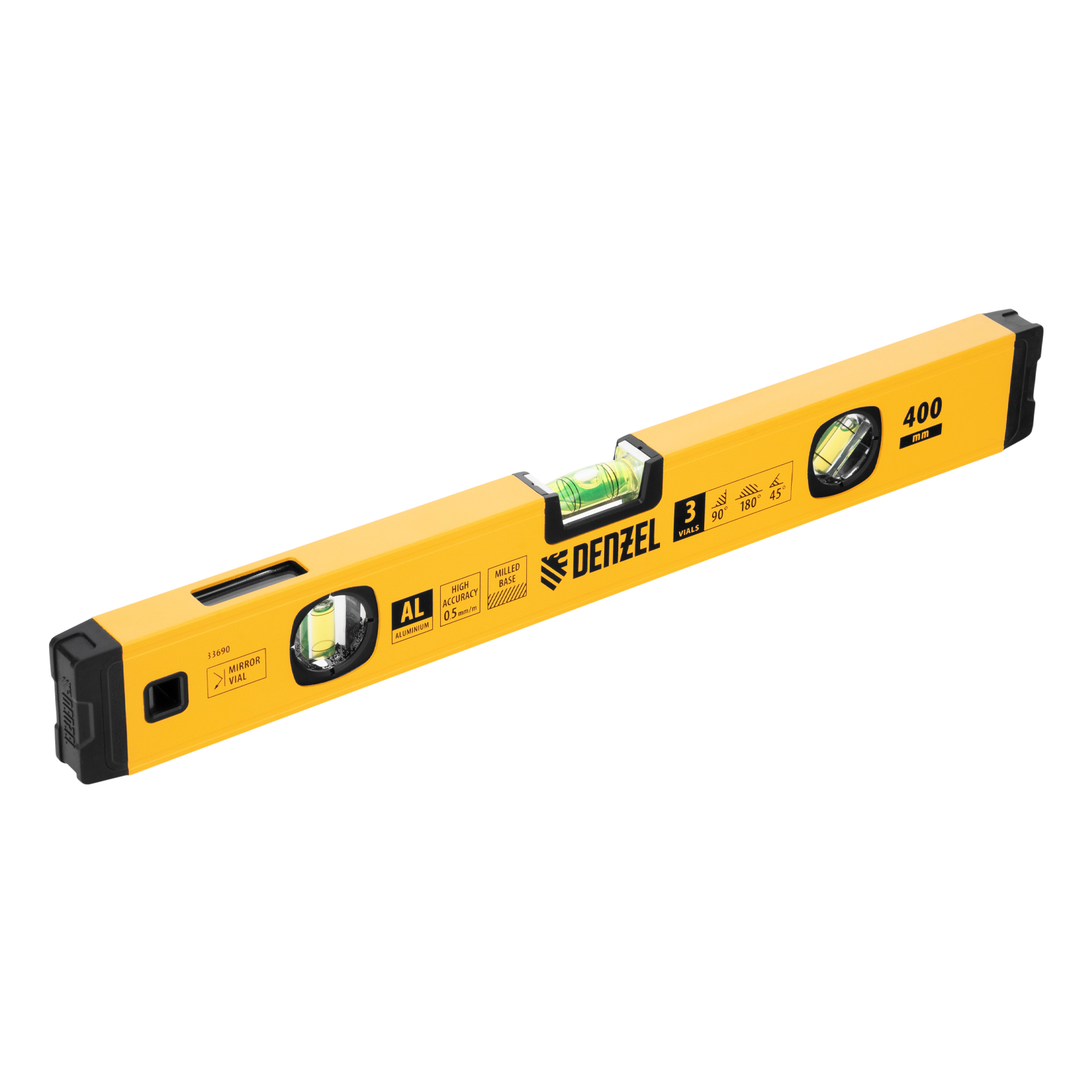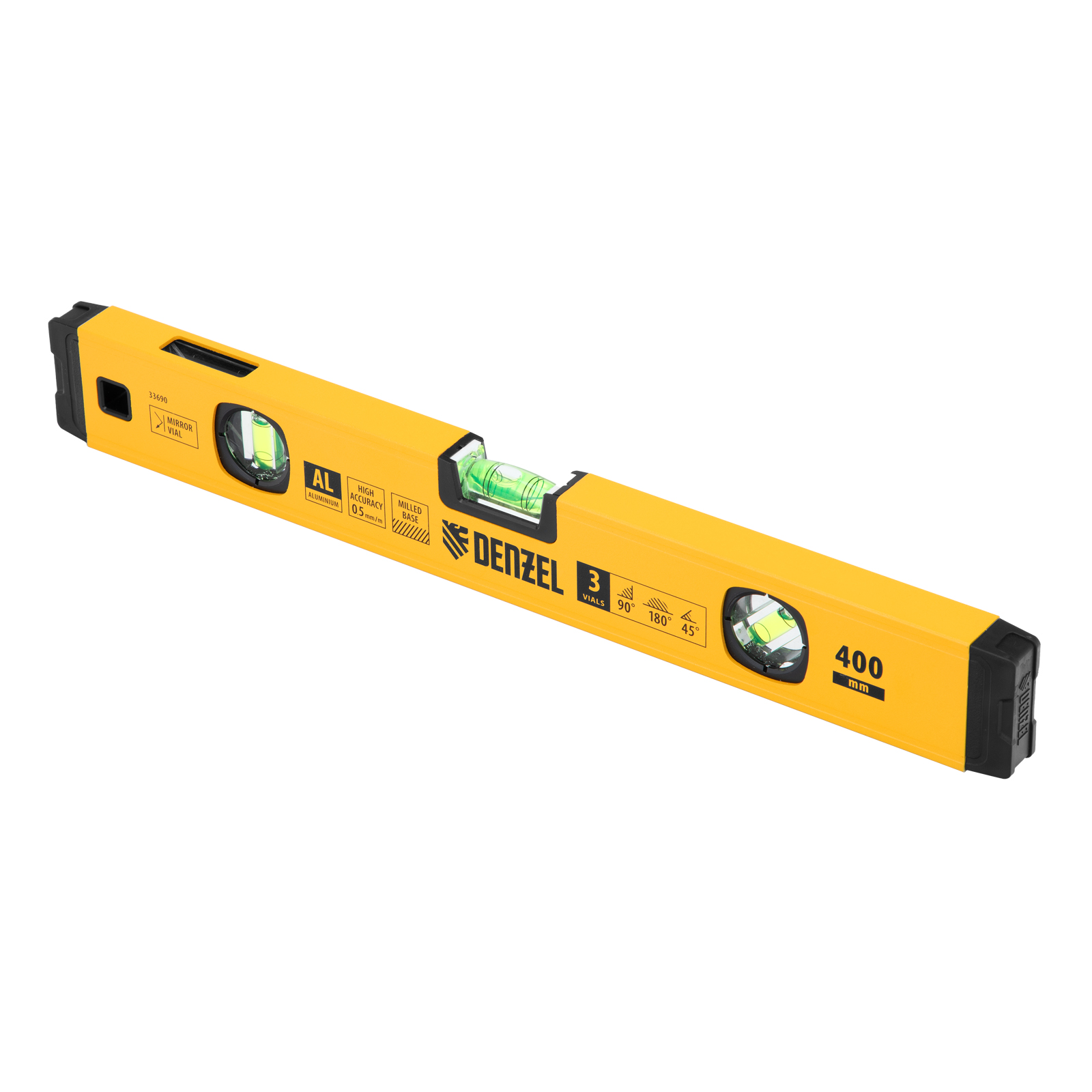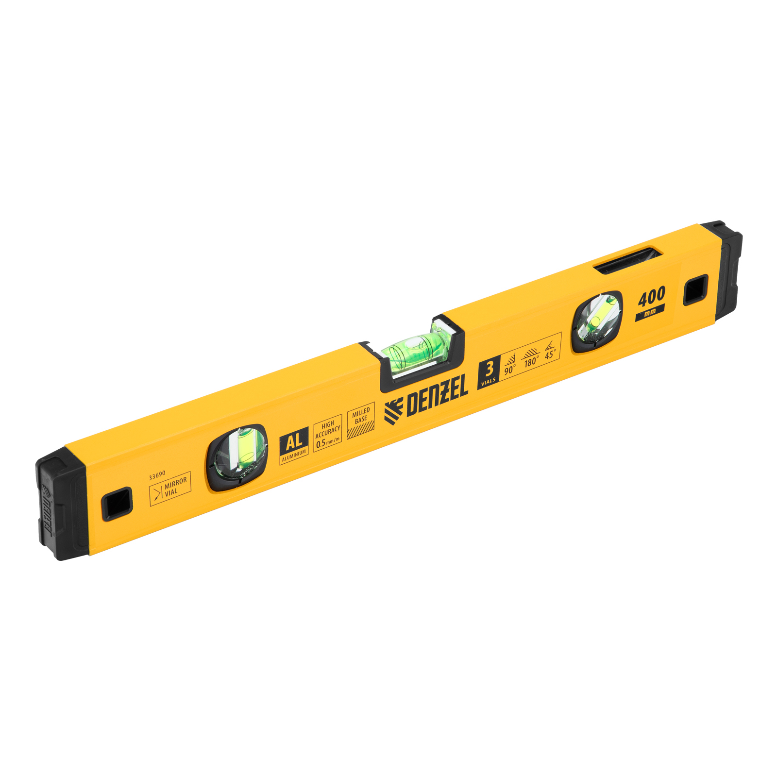 Уровень алюминиевый, магнит., фрезерованный, 3 глазка (1 зеркал.) 0,5 мм/м, 400 мм Denzel в Уфе