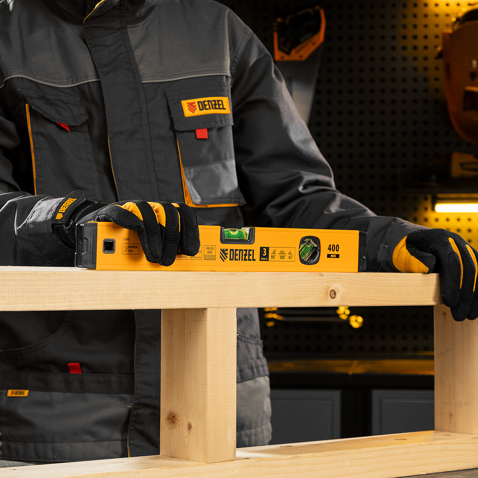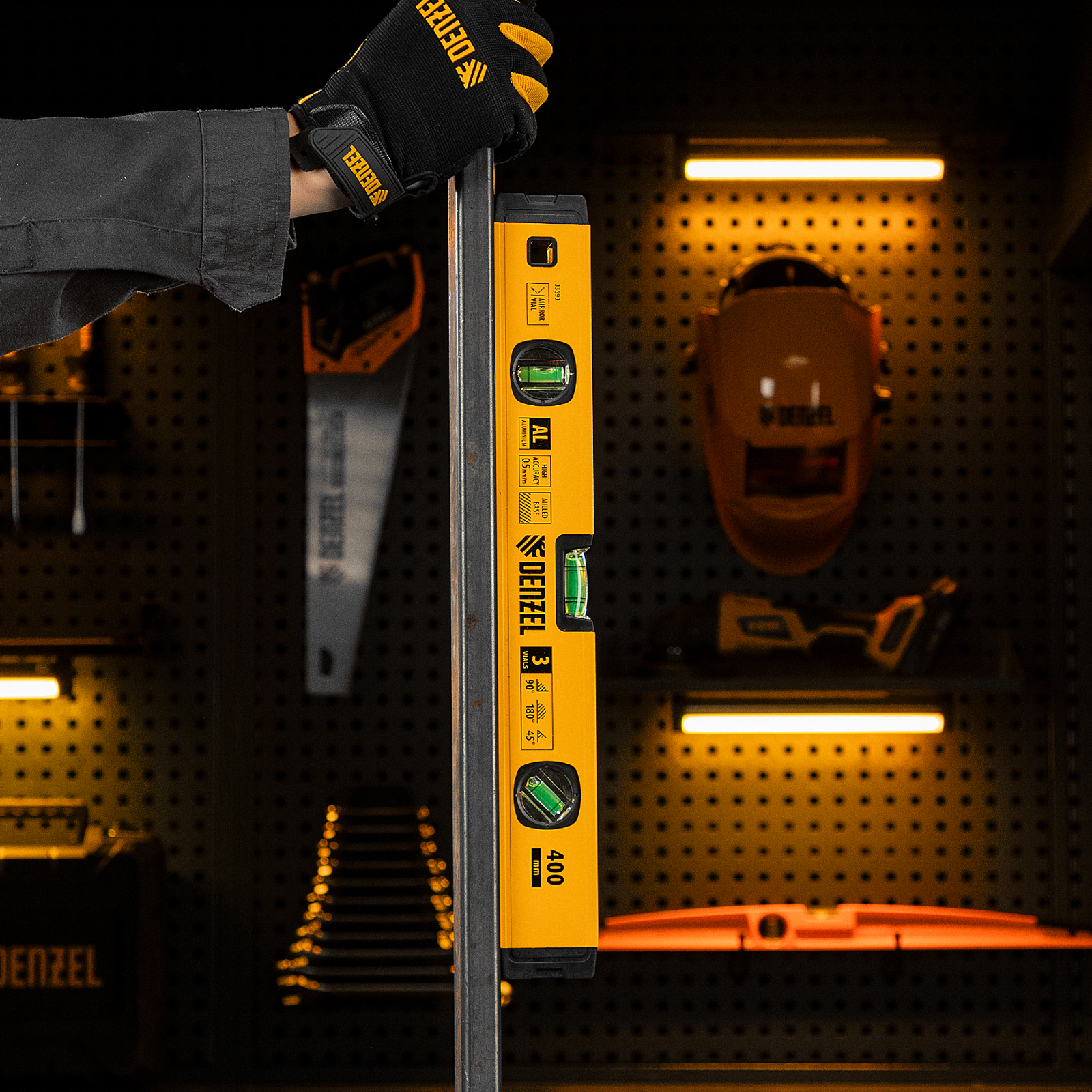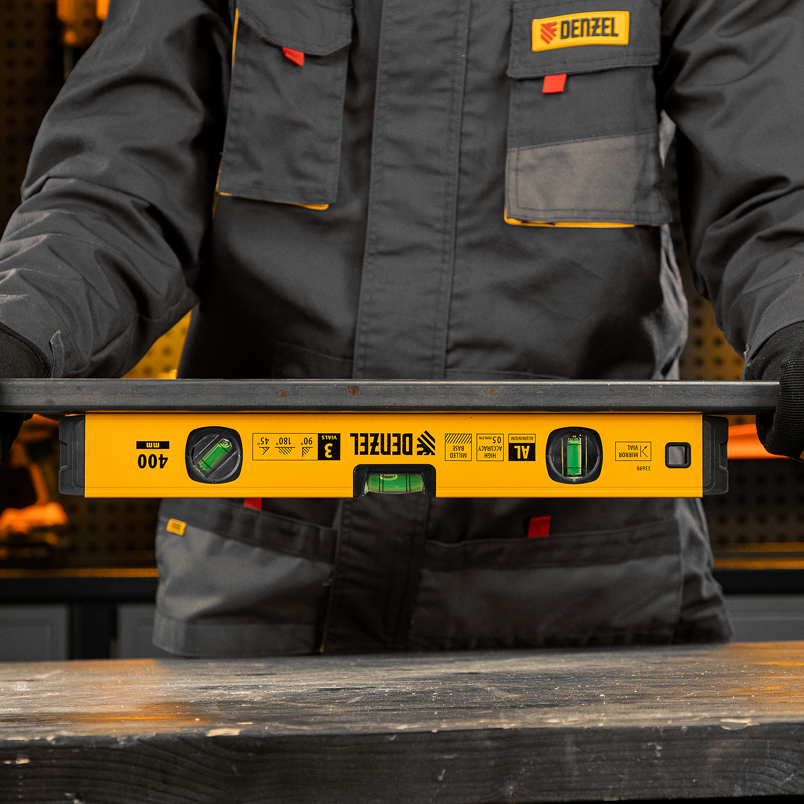 Уровень алюминиевый, магнит., фрезерованный, 3 глазка (1 зеркал.) 0,5 мм/м, 400 мм Denzel в Уфе