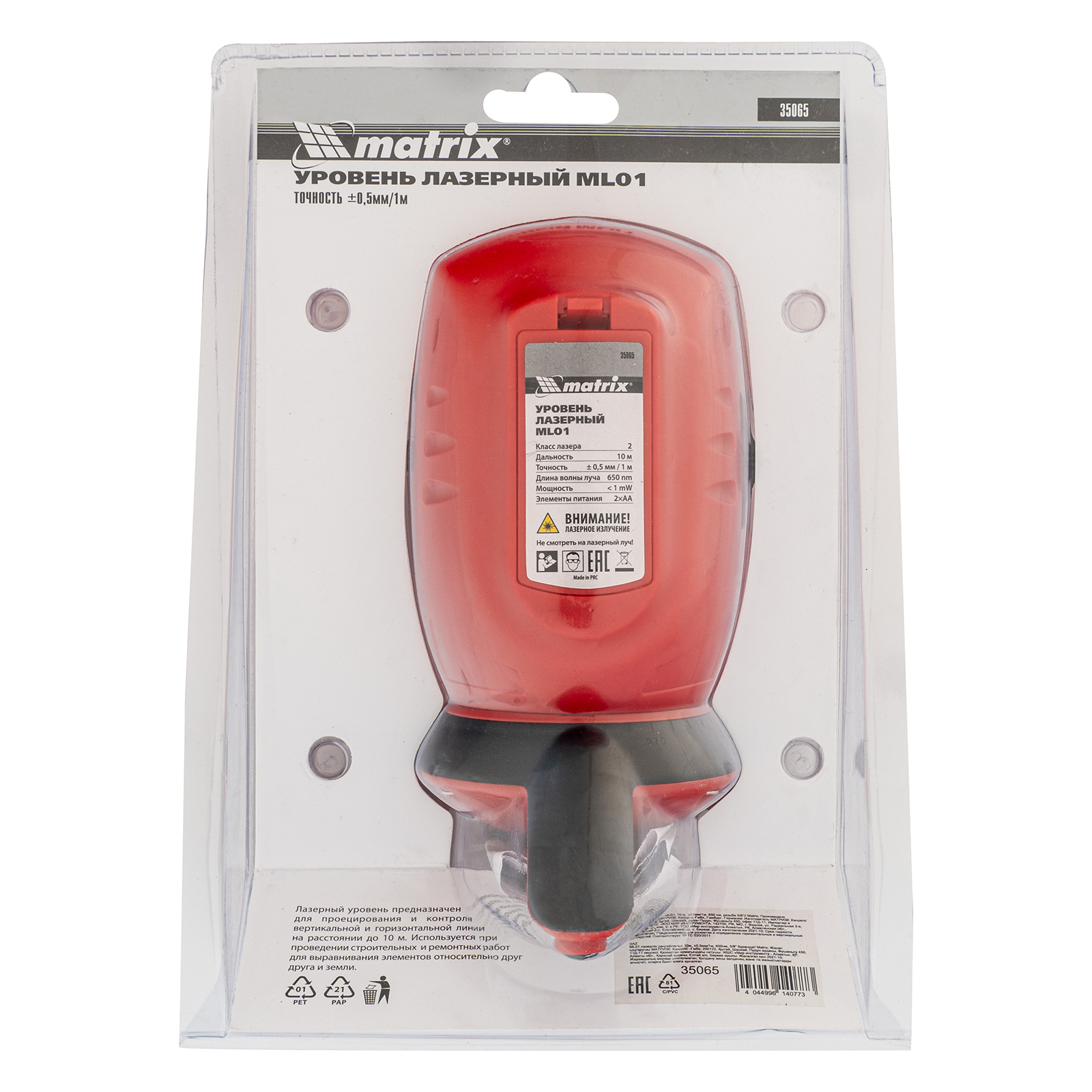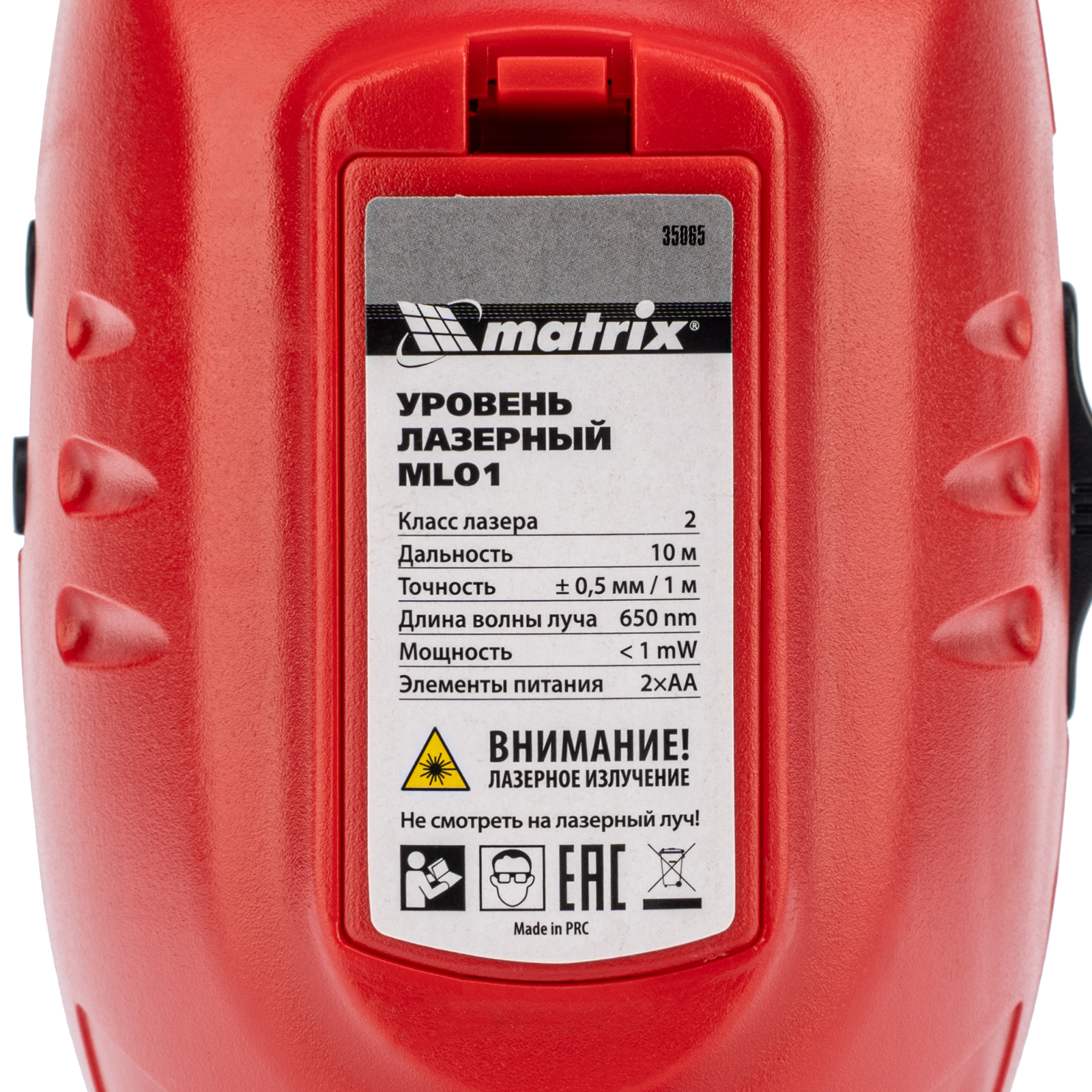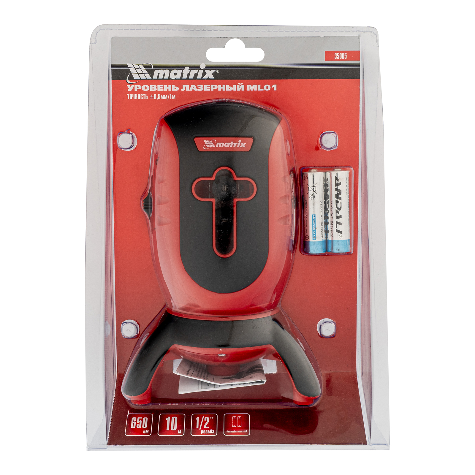 Лазерный уровень ML01T, дальность 10 м, точность ± 0,5 мм, / 1 м, длина волны 650 нм, проекция 1 вертикальная 1 горизонтальная плоскость, резьба под штатив 5/8" Matrix в Уфе
