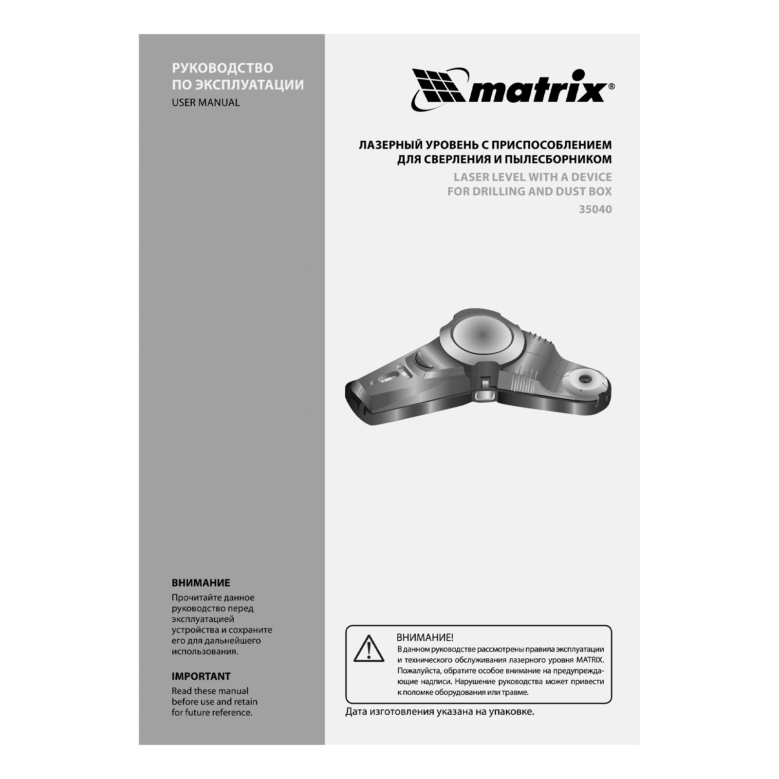 Лазерный уровень с приспособлением для сверления и пылесборником Matrix в Уфе