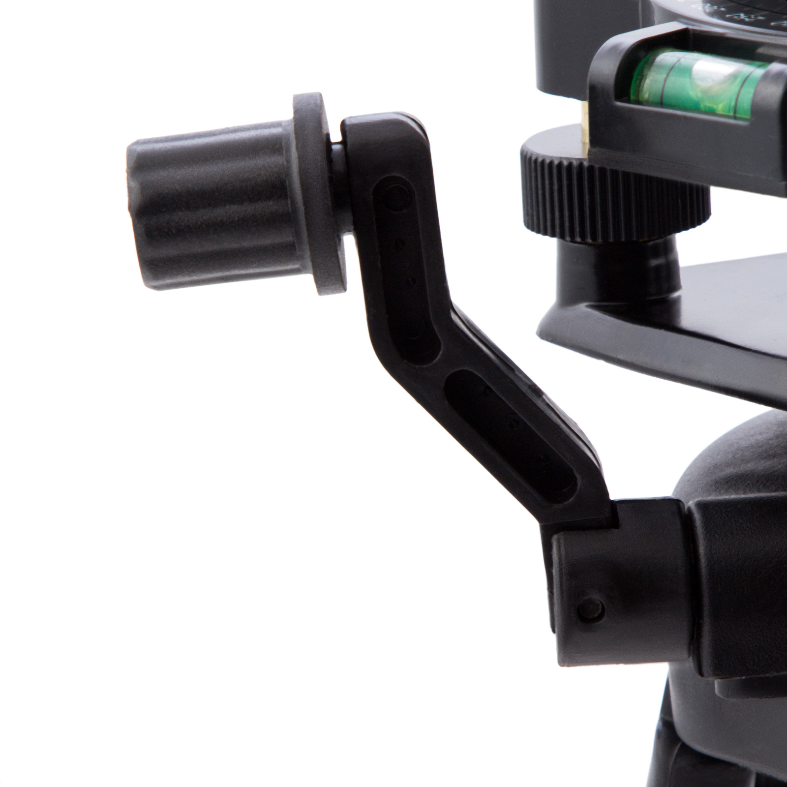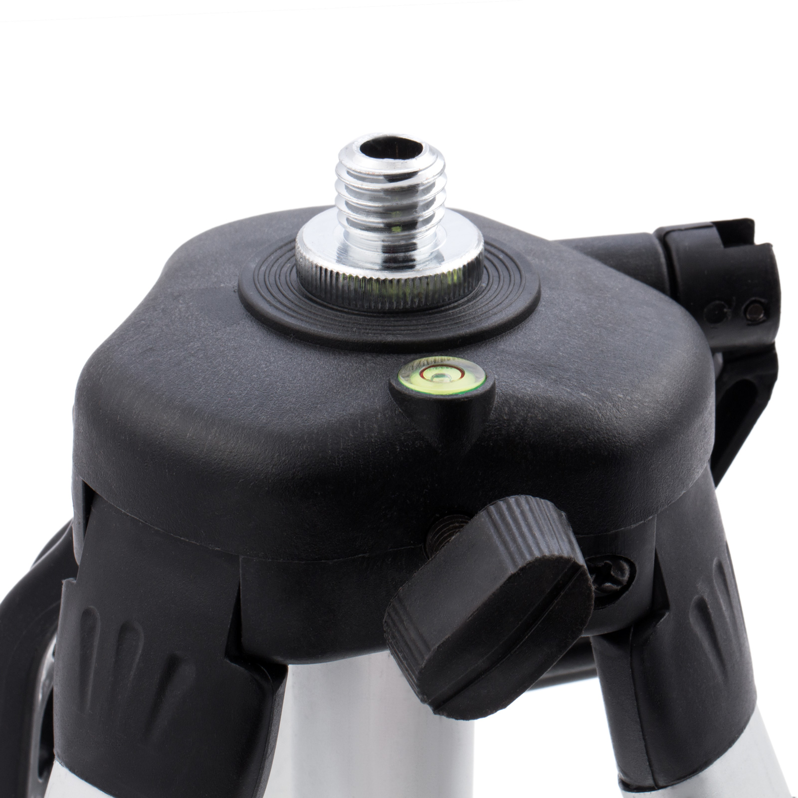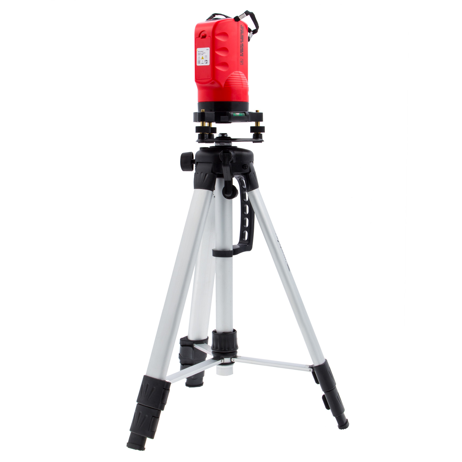 - Удобный штатив — уровень можно зафиксировать на высоте до 110 см, а благодаря поворотной площадке лазерные лучи можно направлять в нужную сторону.