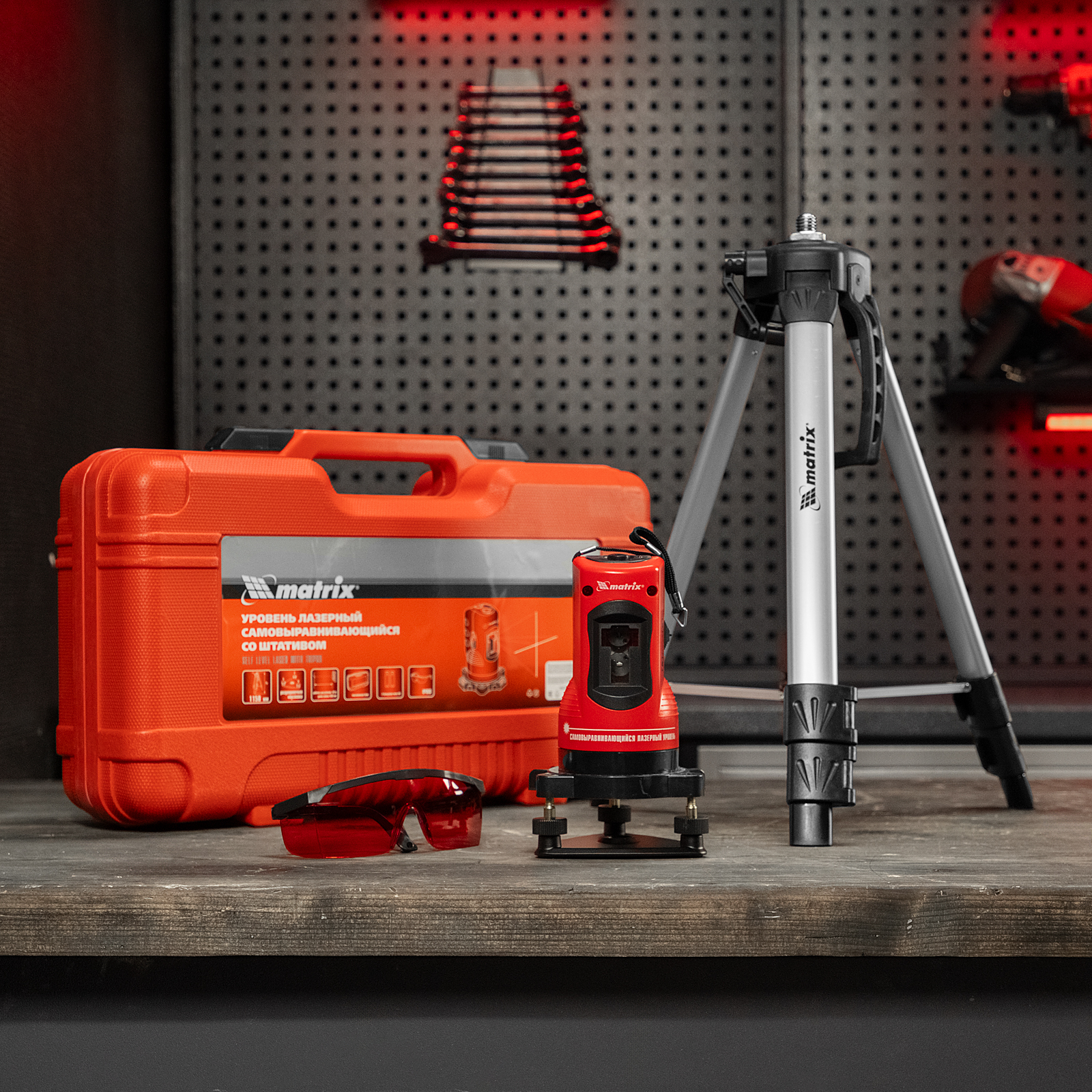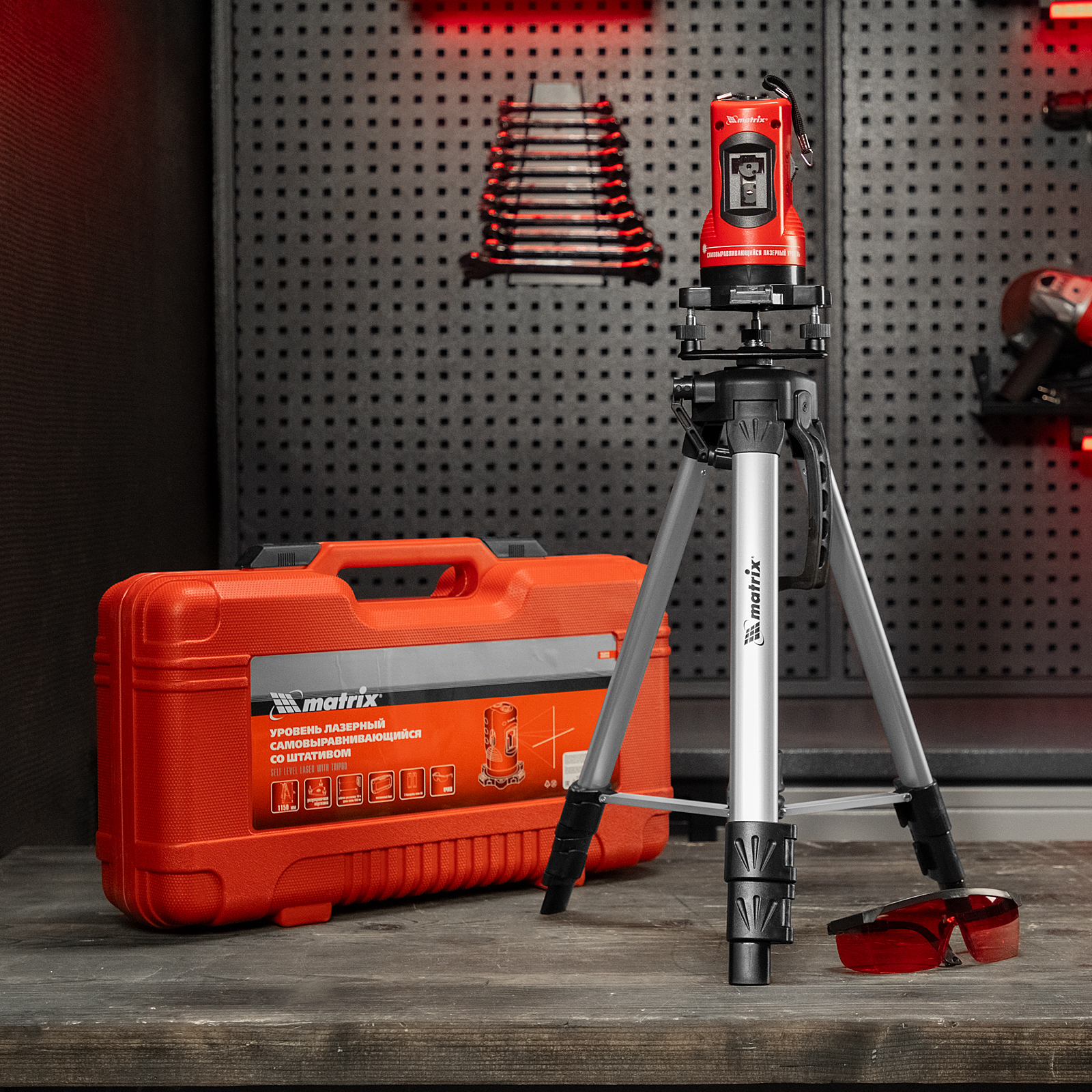 Лазерный уровень самовыравнивающийся, 150 мм, штатив 1150 мм, набор в пластиковом кейсе Matrix в Уфе