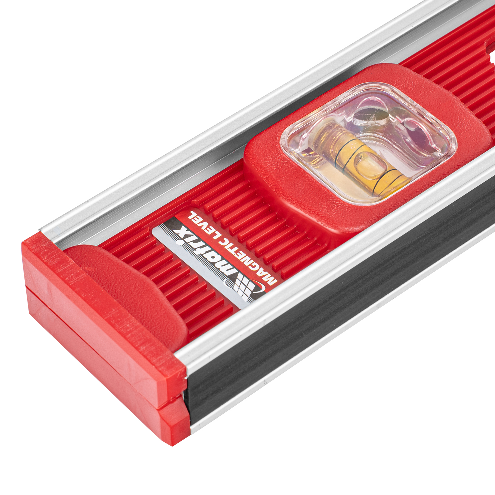 - Удобная фиксация на металлических поверхностях — уровень снабжен встроенными магнитами.