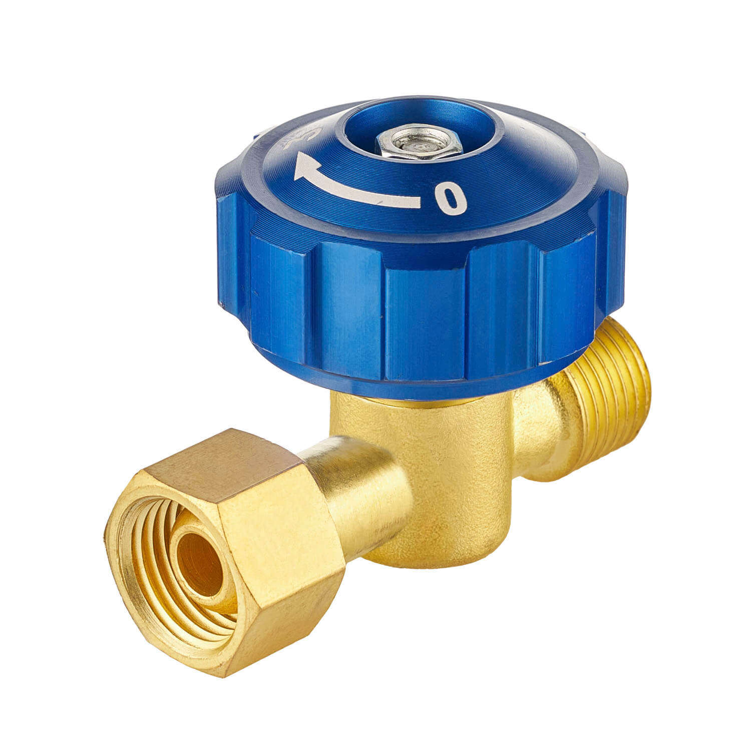 Вентиль КР изготовлен из латуни. Синий барашек изготовлен из алюминия и имеет гравировку на торцевой части с информацией о направлении закрытия (буква «З») и открытия (буква «О») вентиля. Барашек вентиля КР отличается от барашка КП увеличенными габаритами.