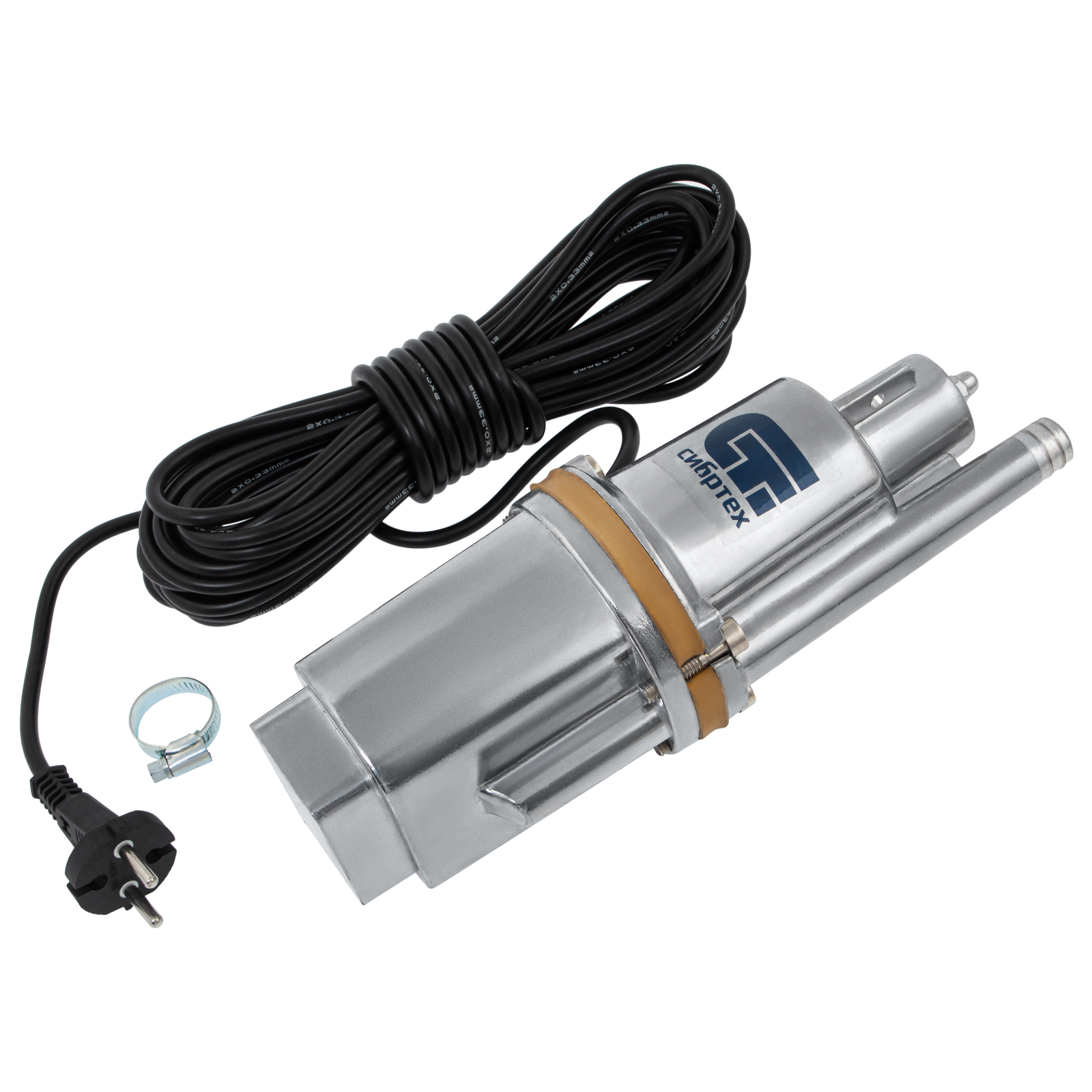 - Готовность к работе — трос для установки насоса и хомут для подключения шланга уже есть в комплекте.