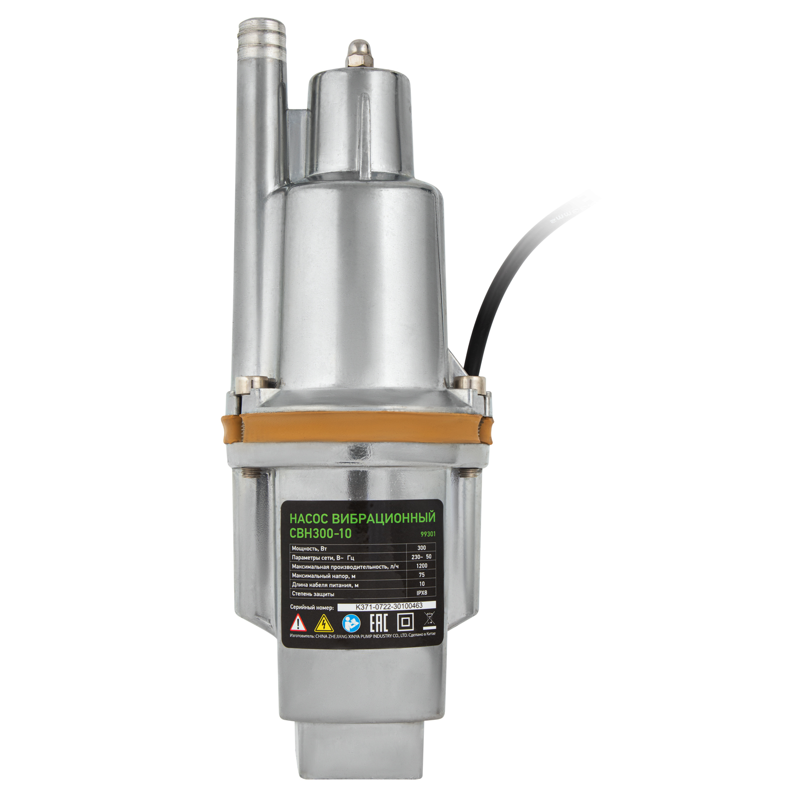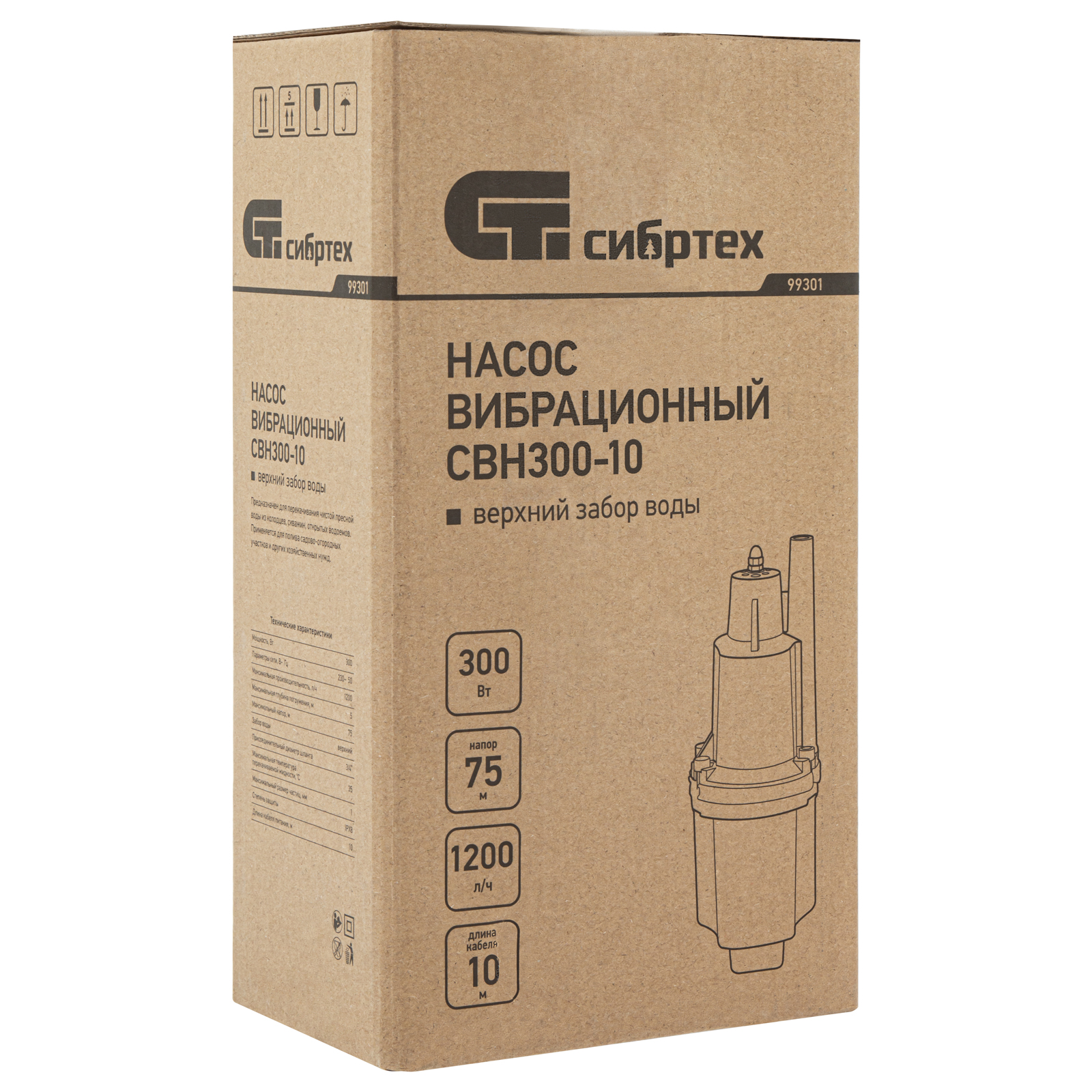 Вибрационный насос СВН300-10, верхний забор, 300 Вт, напор 75 м, 1200 л/ч, кабель 10 м Сибртех, 1200 л/ч в Уфе