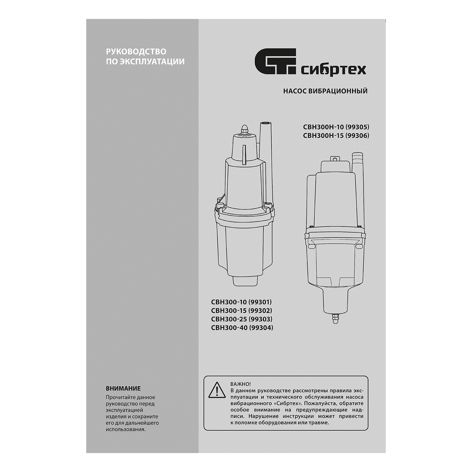 Вибрационный насос СВН300Н-10, нижний забор, 300 Вт, напор 75 м, 1200 л/ч, кабель 10 м Сибртех в Уфе