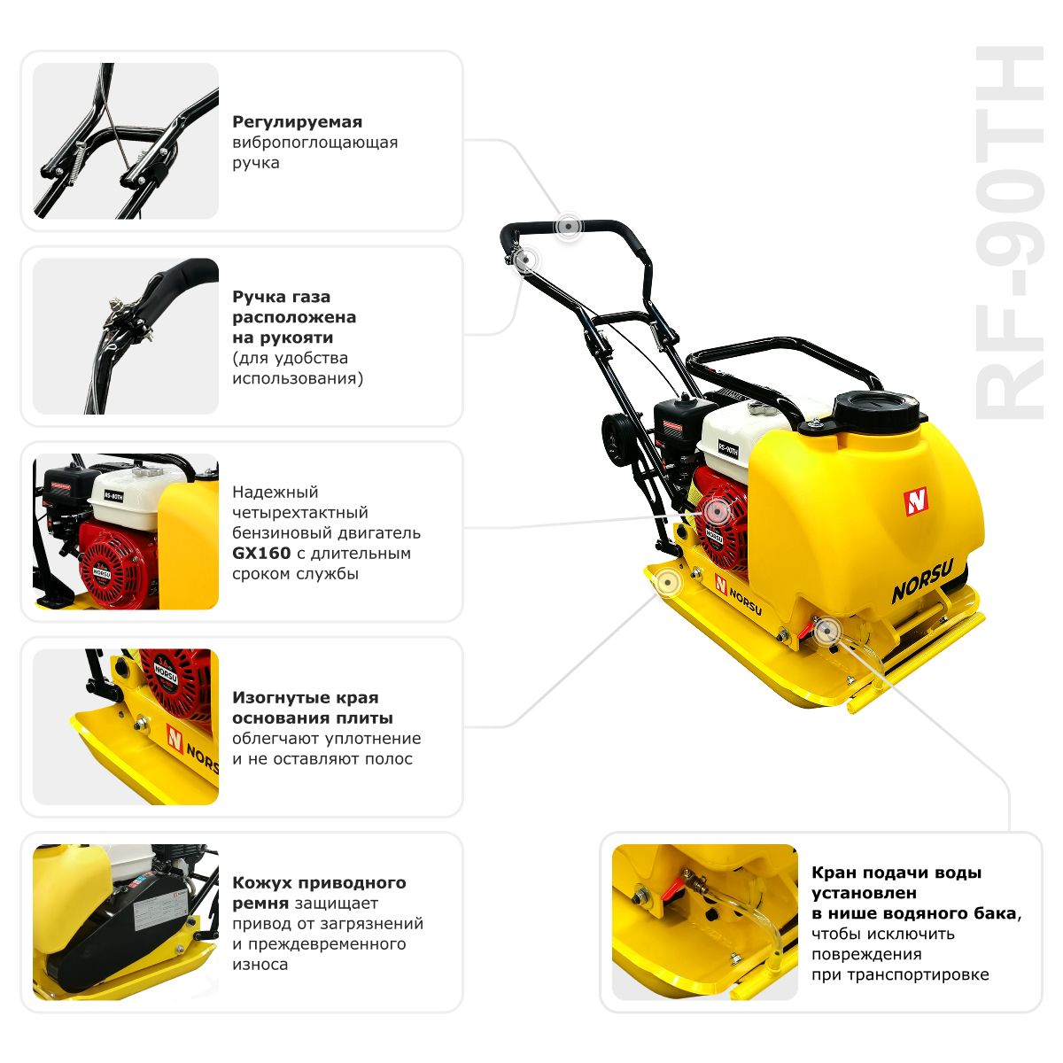 Виброплита бензиновая прямоходная NORSU RF-90TH (колесный комплект, бак для воды) в Уфе