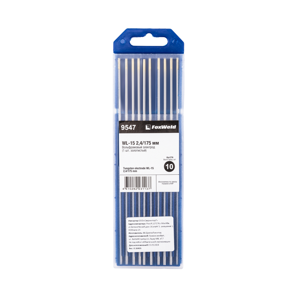 • Вольфрамовый электрод WL-15 2,4мм / 175мм (1шт. золотистый) FoxWeld купить в Москве с доставкой по всей России | ProtosMarket.ru