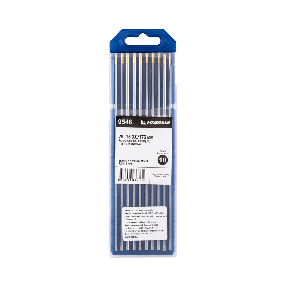 Вольфрамовый электрод WL-15 3,0мм / 175мм (1шт. золотистый) FoxWeld в Уфе