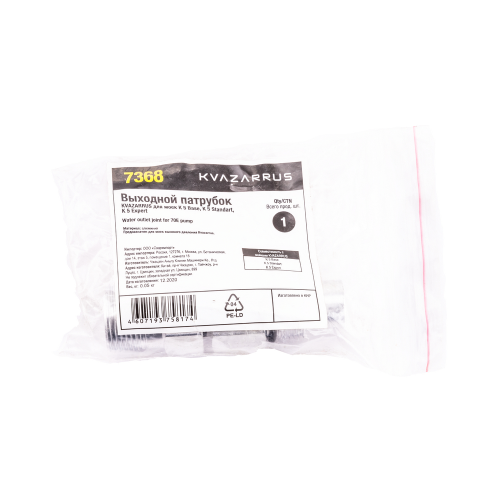 Выходной патрубок KVAZARRUS для моек K 5 Base – 1 шт.