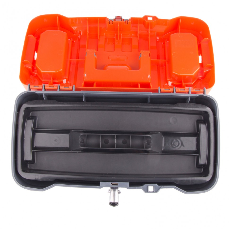 - Съемный лоток с ручкой позволяет рационально организовать пространство внутри контейнера для хранения инструментов.