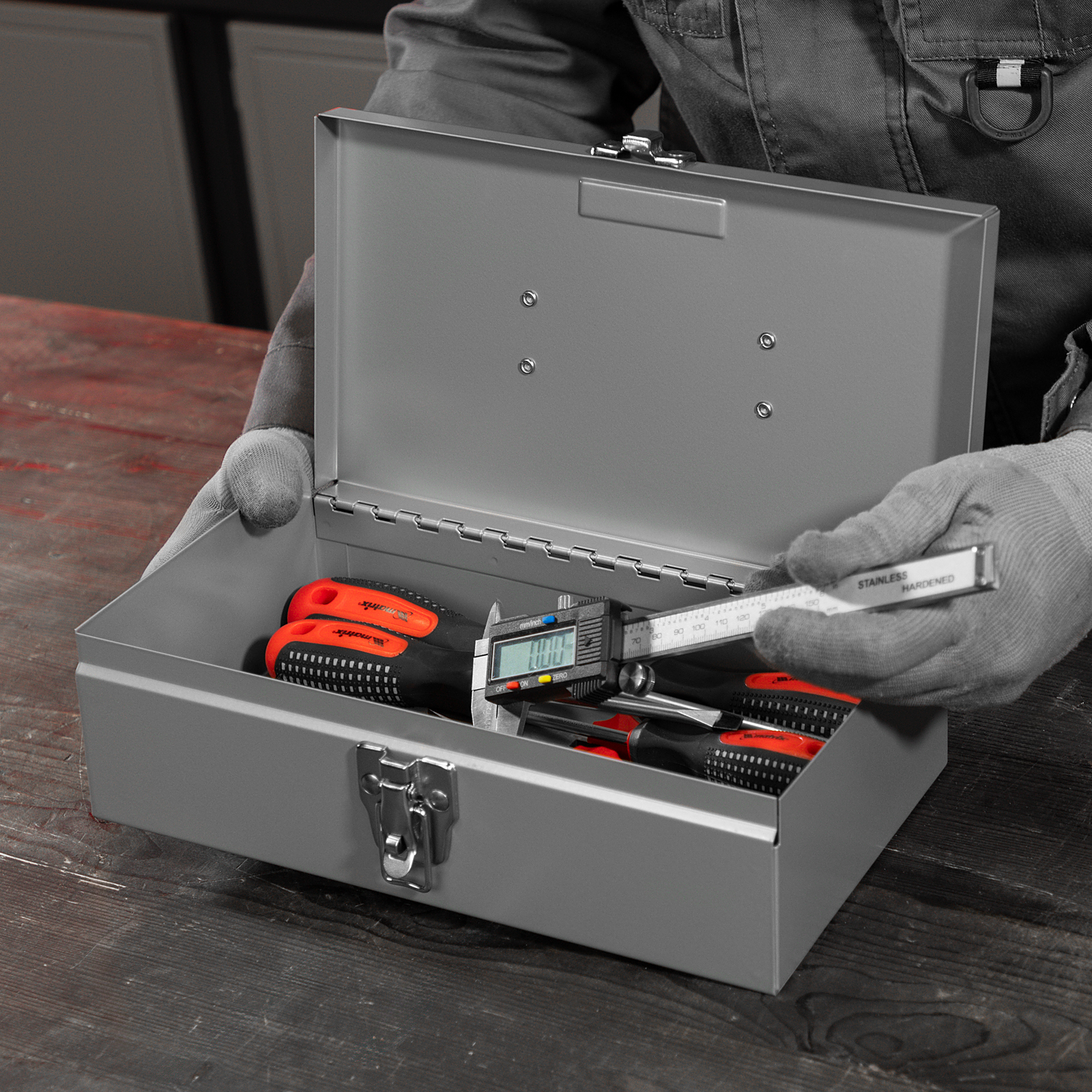 - Надежная защита содержимого — прочный металлический корпус устойчив к механическим воздействиям.