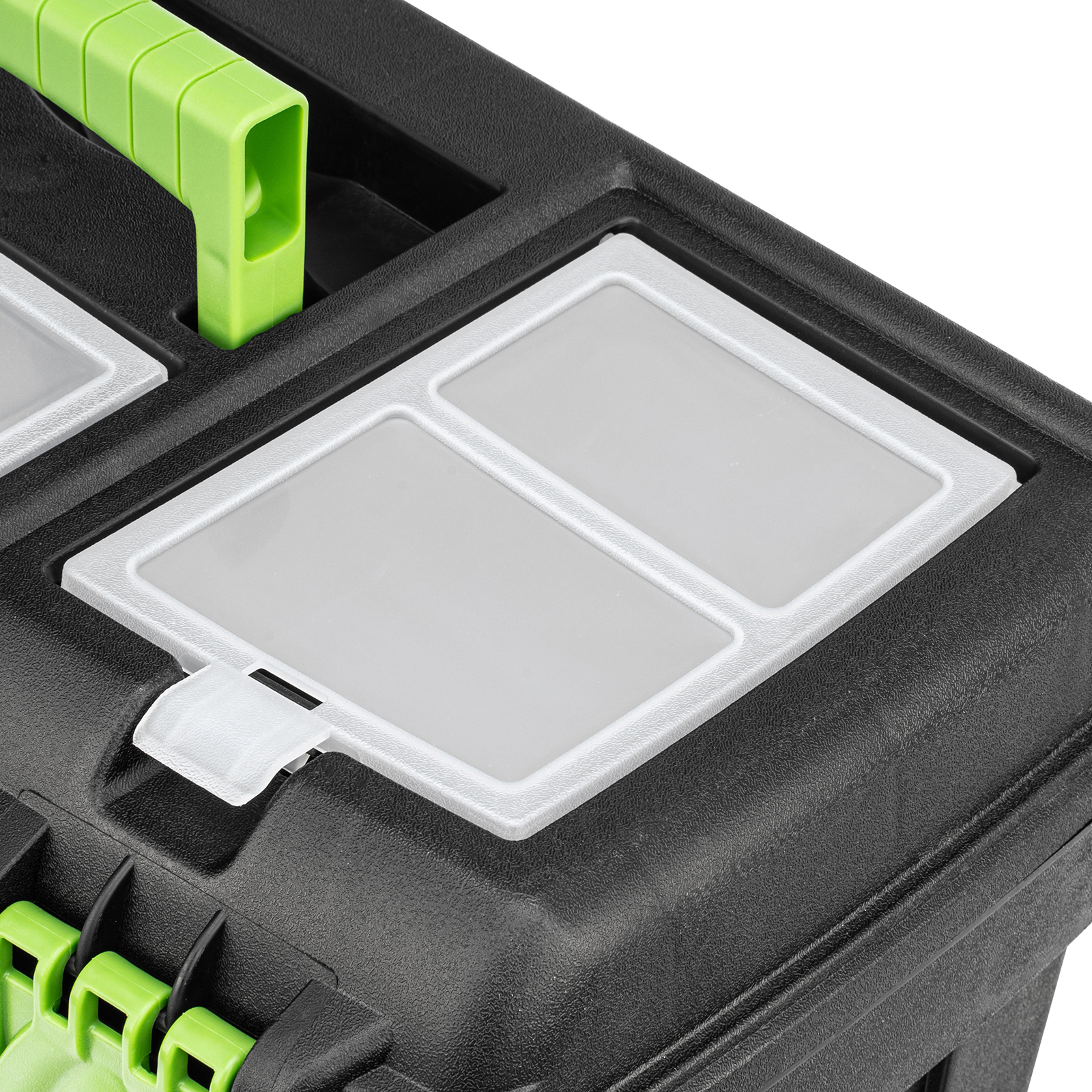 - Удобное хранение крепежа и мелких деталей — в крышке имеются органайзеры.