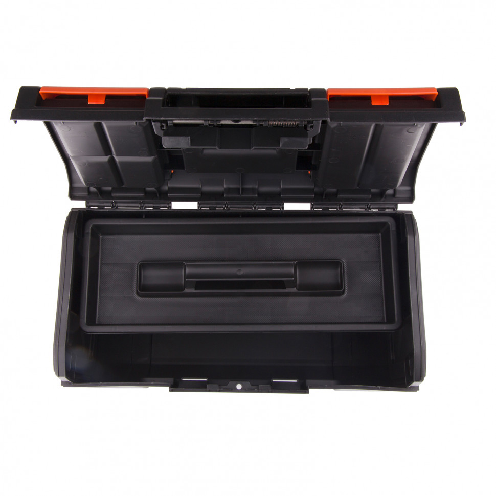 - Упорядоченное хранение крепежа и мелких деталей — в крышке имеются специальные органайзеры, также в комплект поставки входит съемный лоток с ручкой.
