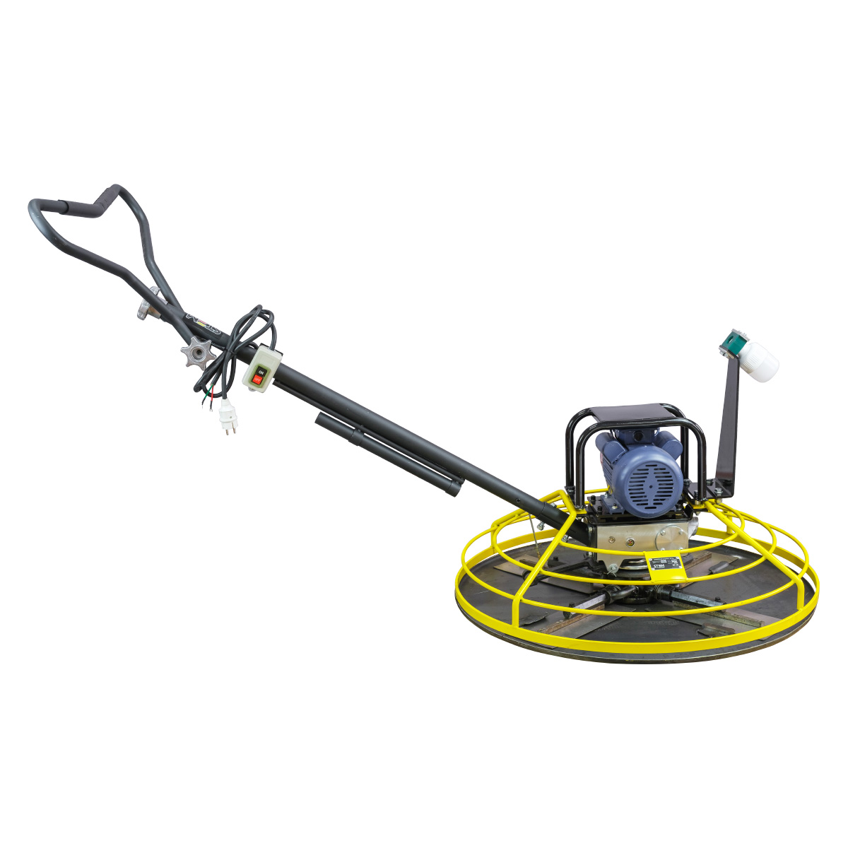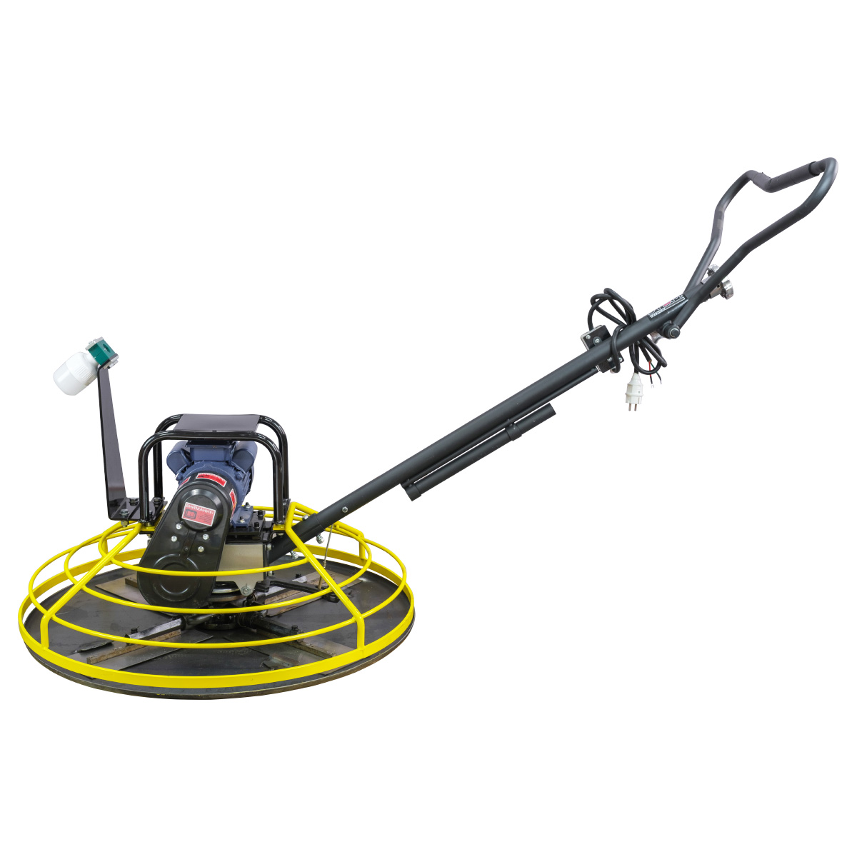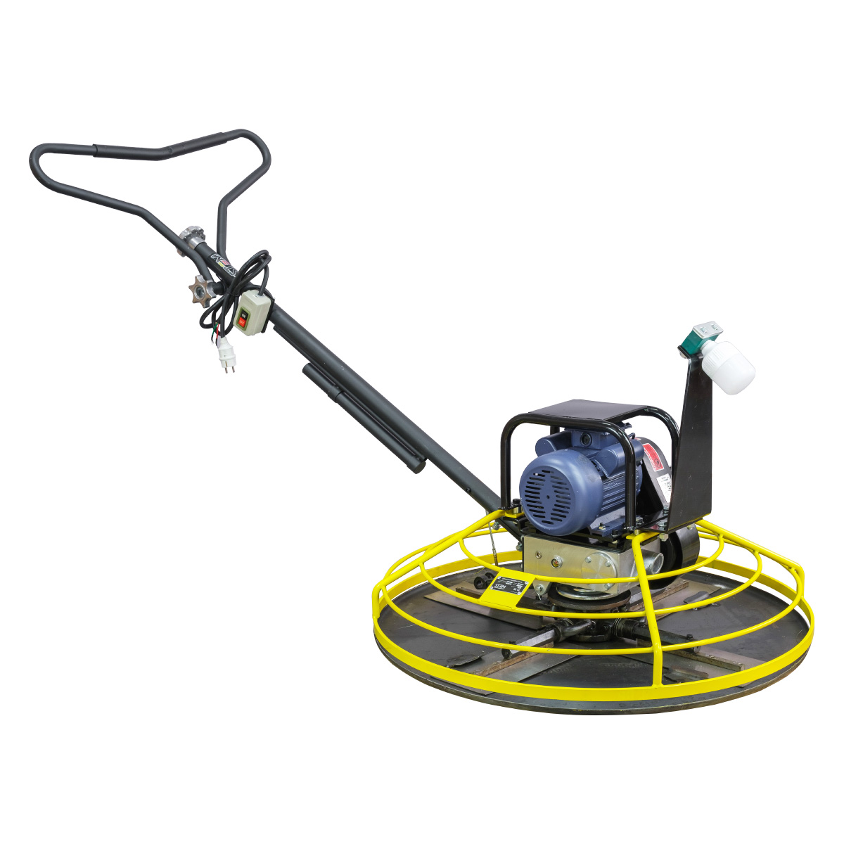 Электрический двигатель 220В: Главное преимущество для работы внутри зданий, ангаров, цехов и гаражей — отсутствие выхлопных газов и низкий уровень шума. Двигатель обеспечивает стабильные обороты диска для равномерной затирки по всей площади.