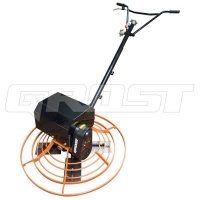Система защитного отключения. Возможность самостоятельной замены бензинового привода на электрический и наоборот. Экономия места и денег. Простота в эксплуатации. Наборная защитная решетка. Затирочная машина GROST ZMU.E1 с электрическим двигателем 220В, рабочий диаметр 780, 880, 980 мм, для работы с бетоном.