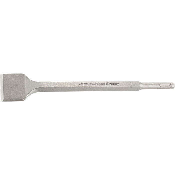 Зубило Барс 70307 размером 14 х 40 х 250 мм, из стали 60 CrV, с хвостовиком SDS PLUS, применяется совместно с перфоратором для дробления твердых материалов: камня, бетона и кирпича. Пригодится частным и профессиональным мастерам для разрушения различных конструкций, демонтажа старой отделки, штробления стен и выполнения других операций.